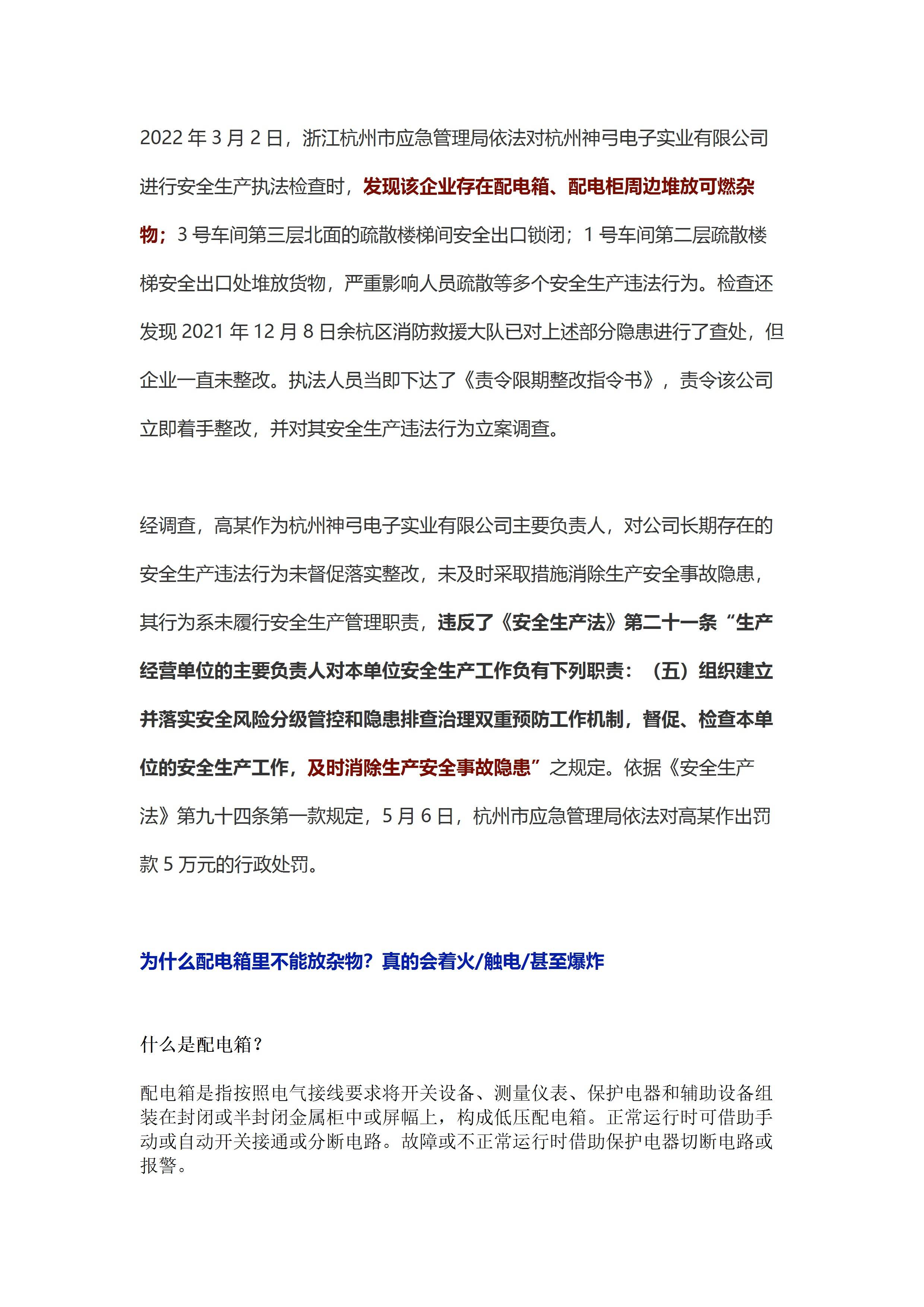 通报 配电箱周边堆放可燃杂物 企业负责人被罚5万[文档]