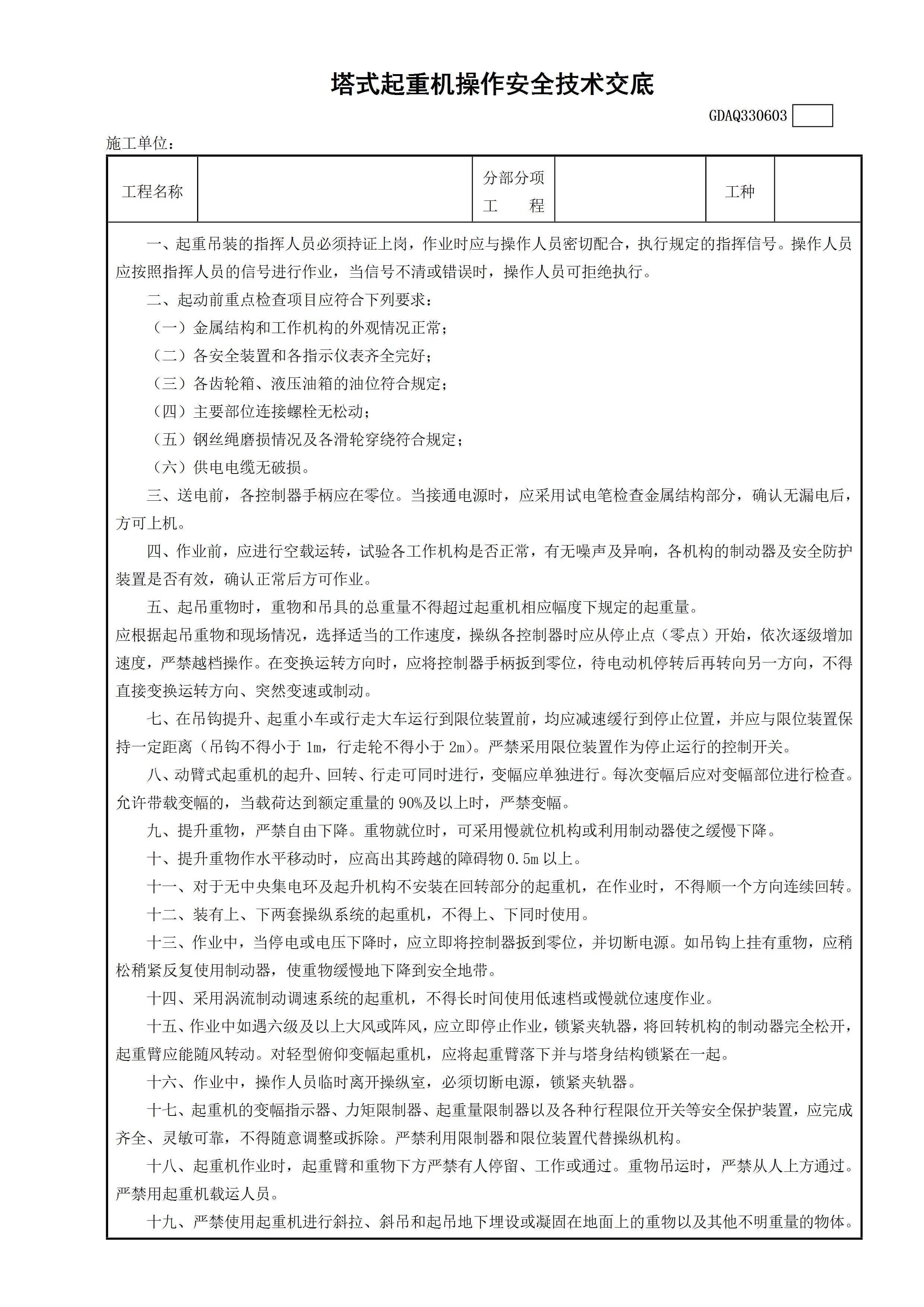 塔式起重机操作安全技术交底GDAQ330603[文档]