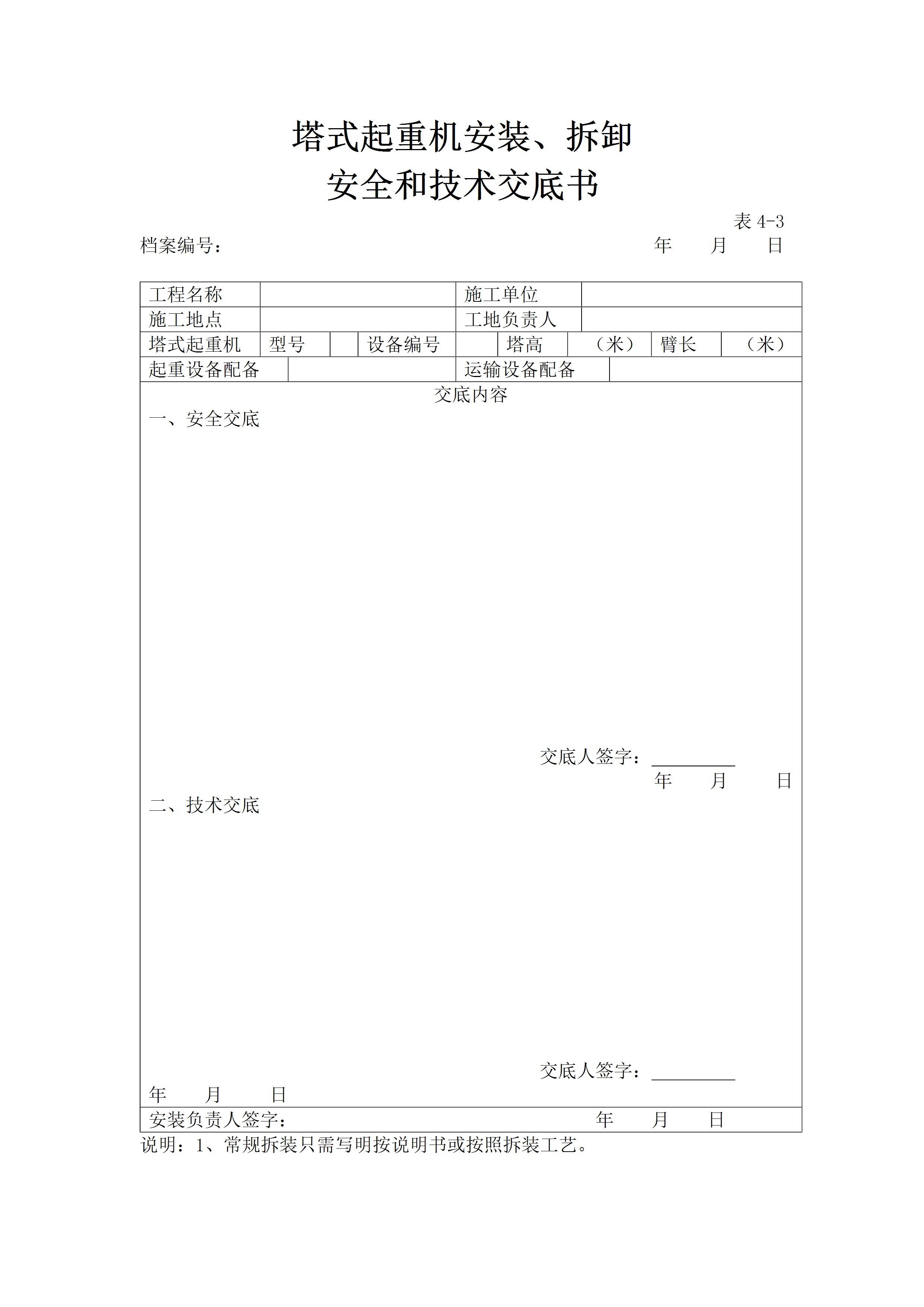 塔式起重机安装,拆卸安全和技术交底书[文档]