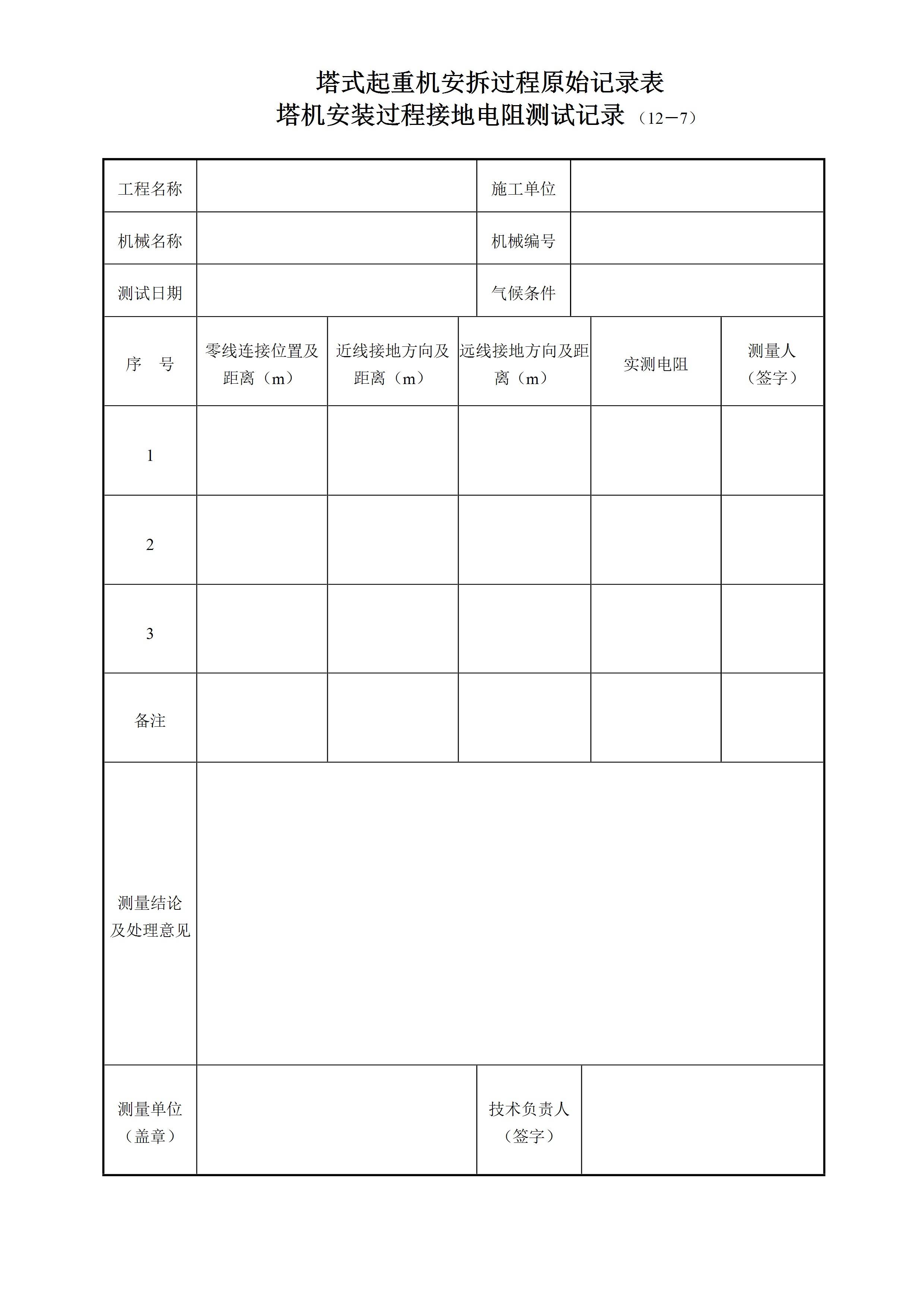 / 塔式起重机安拆过程原始记录表127[文档]