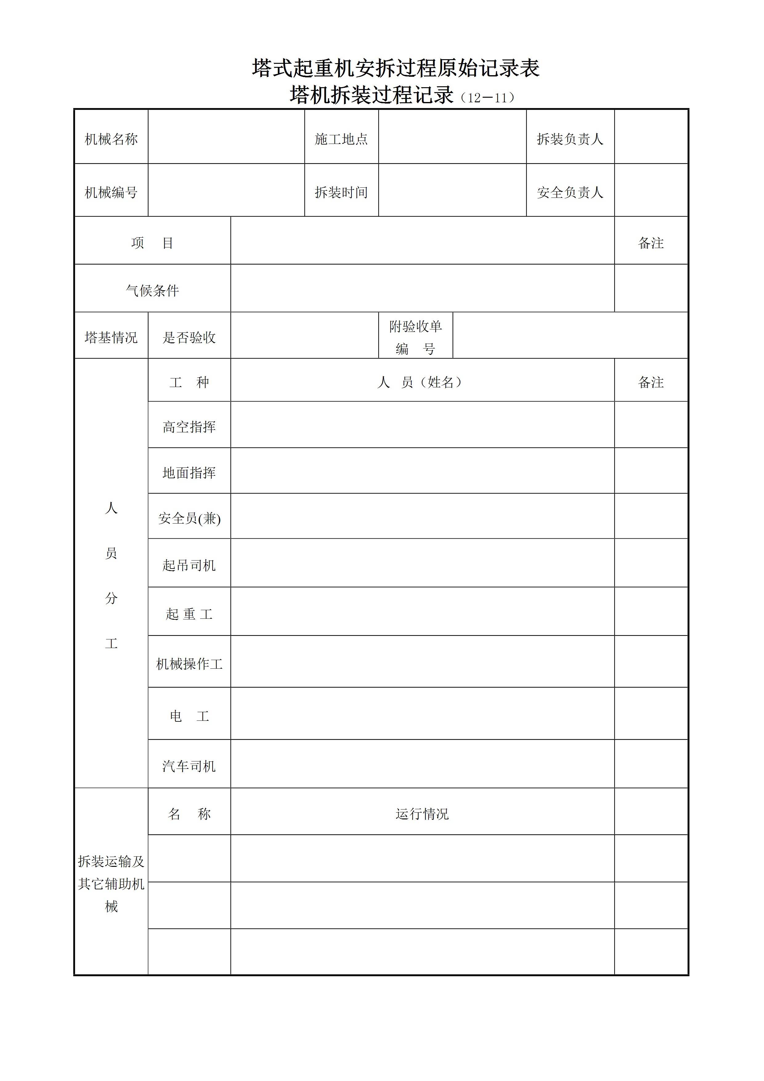 / 塔式起重机安拆过程原始记录表1211[文档]