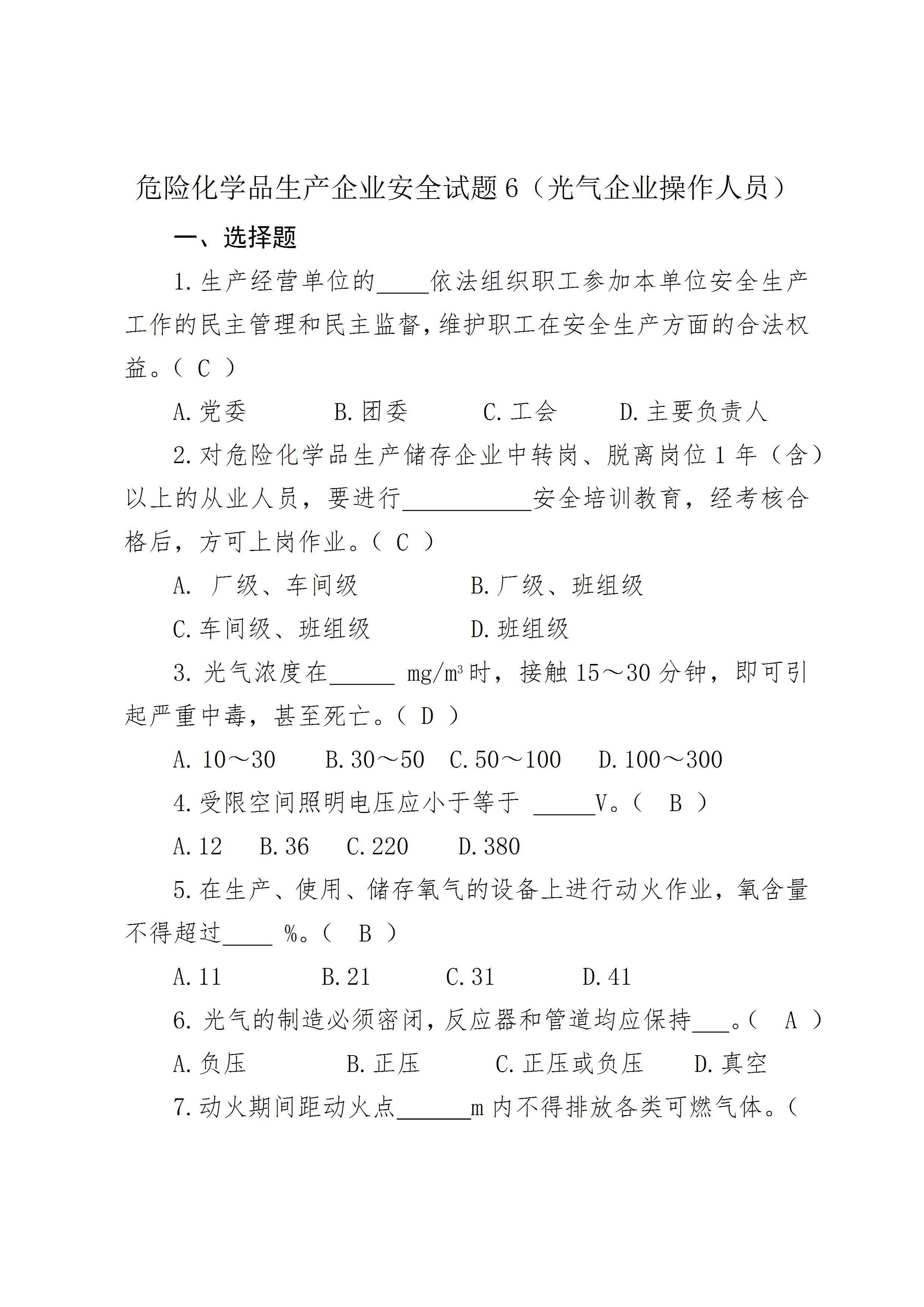 / 危险化学品生产企业安全试题6(光气化从业人员)