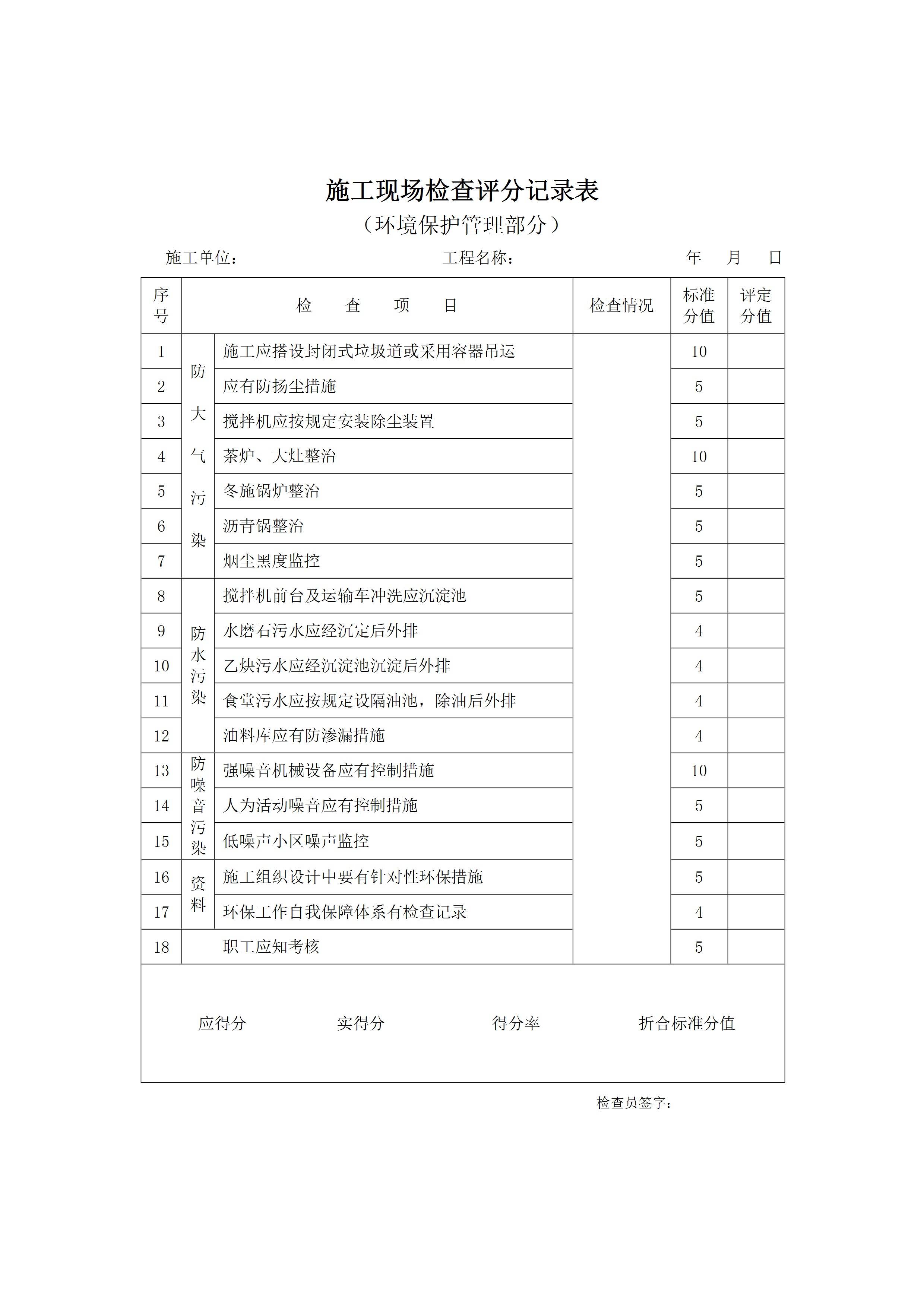 / 施工现场检查评分记录表(环境保护管理部分)