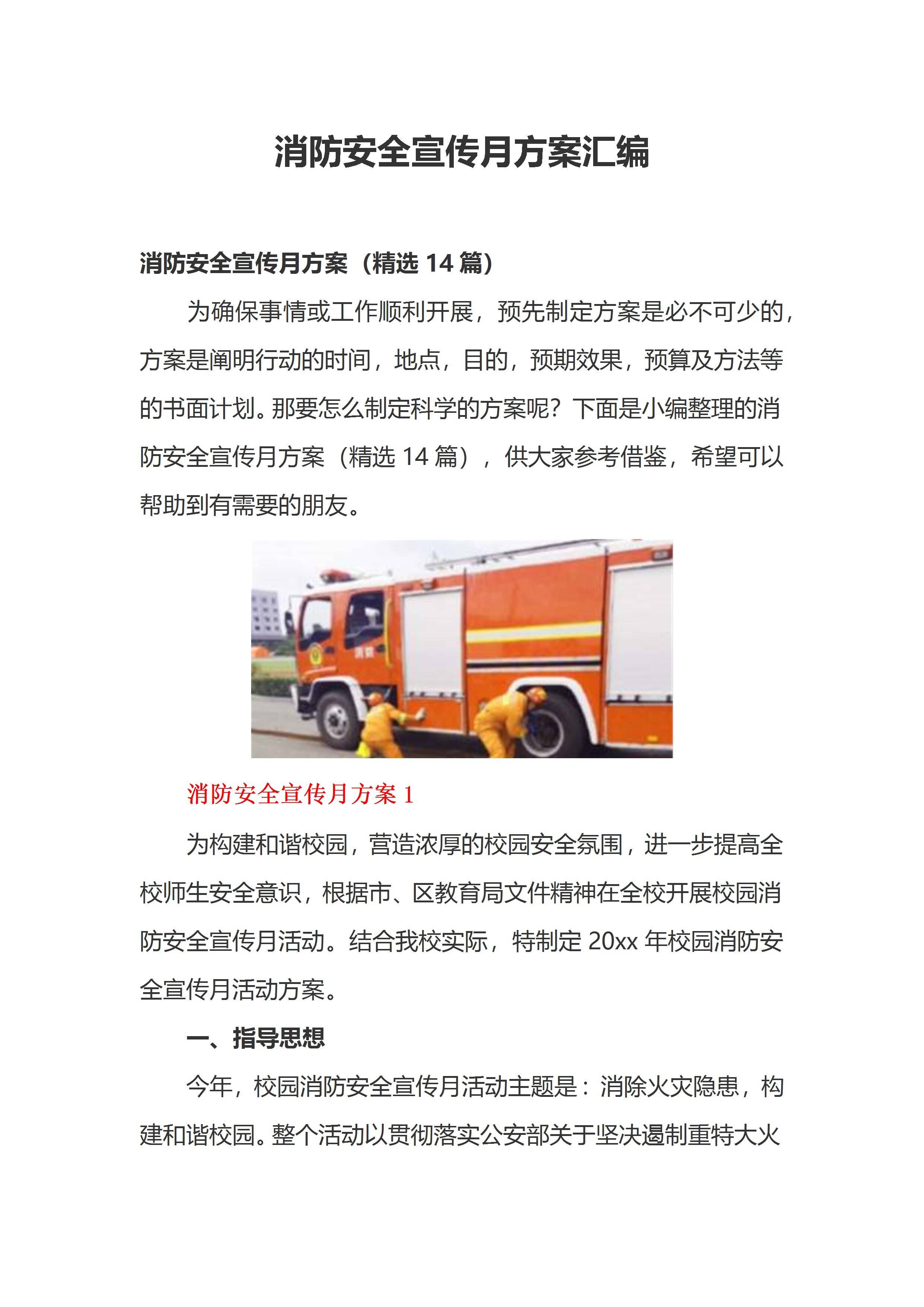 / 【方案】消防安全宣传月活动方案14篇汇编(35页)