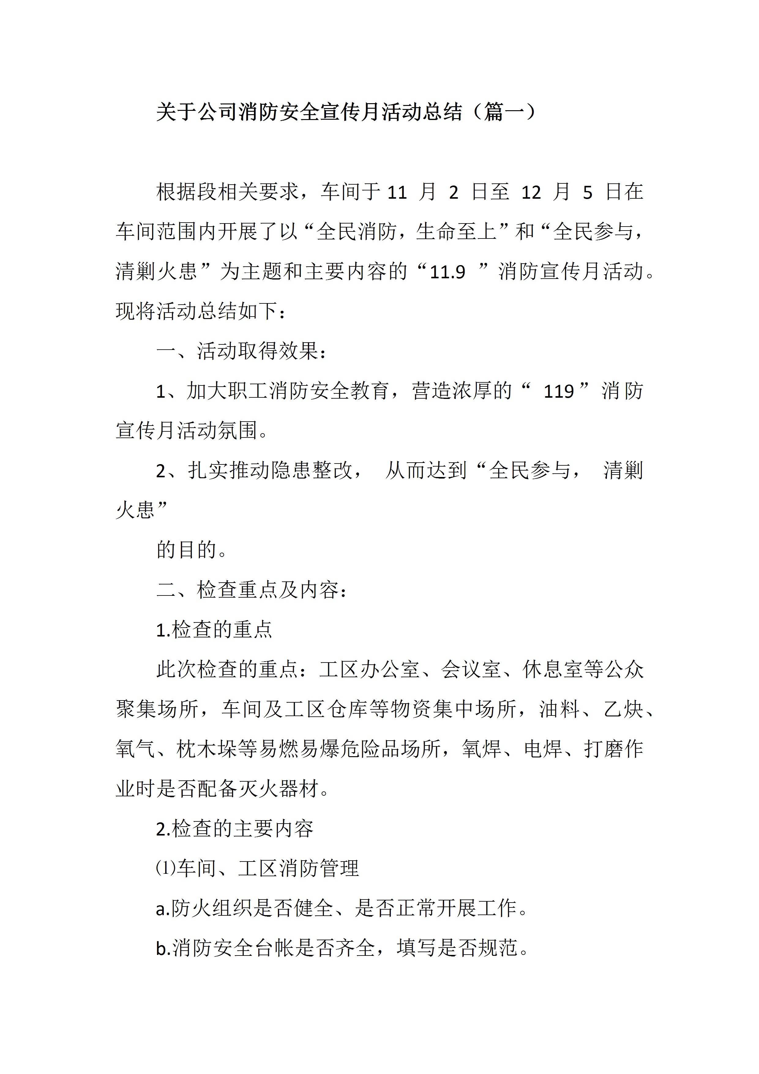 【方案】关于公司消防安全宣传月活动总结三篇(8页)