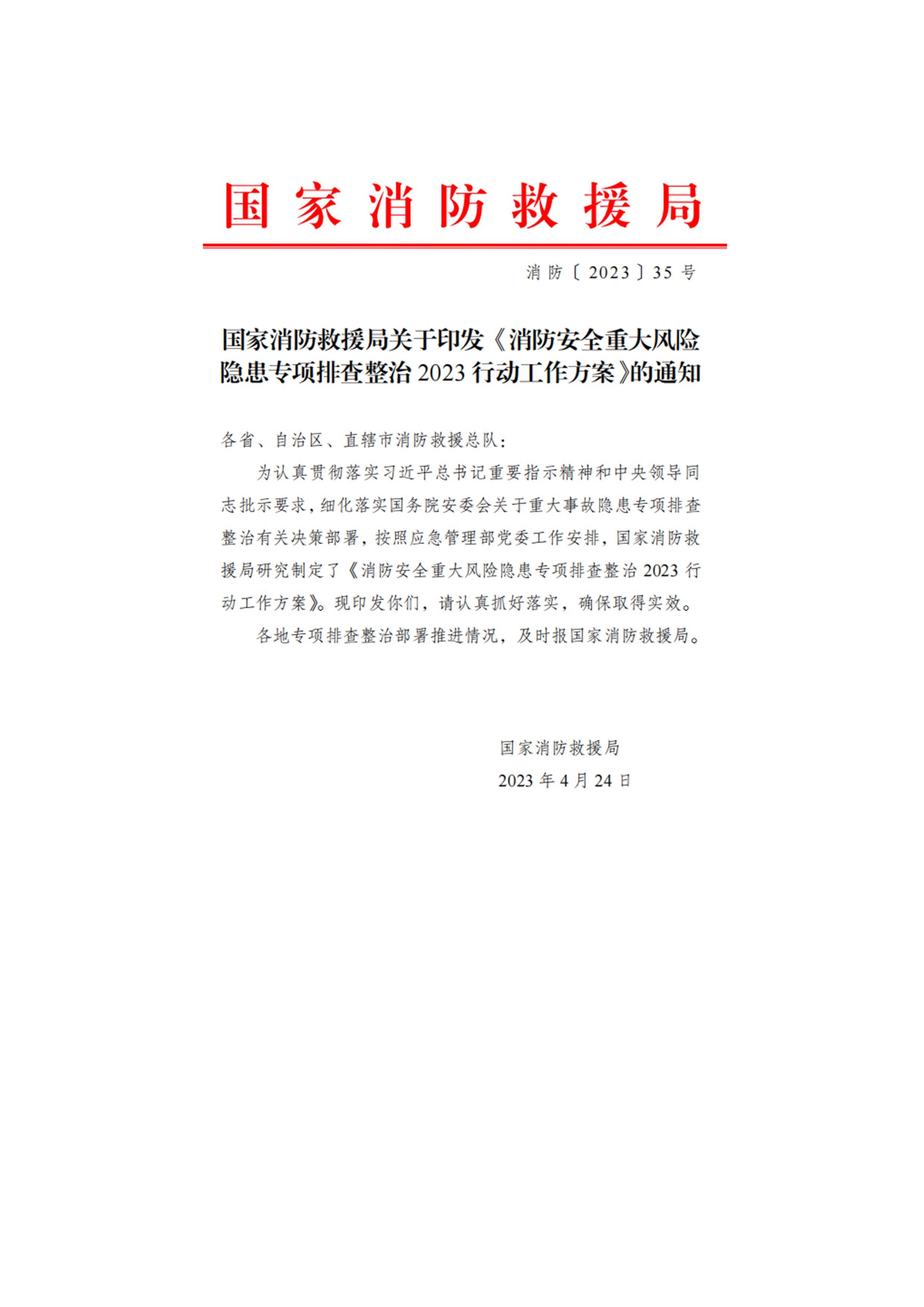 / 《消防安全重大风险隐患专项排查整治2023行动工作方案》