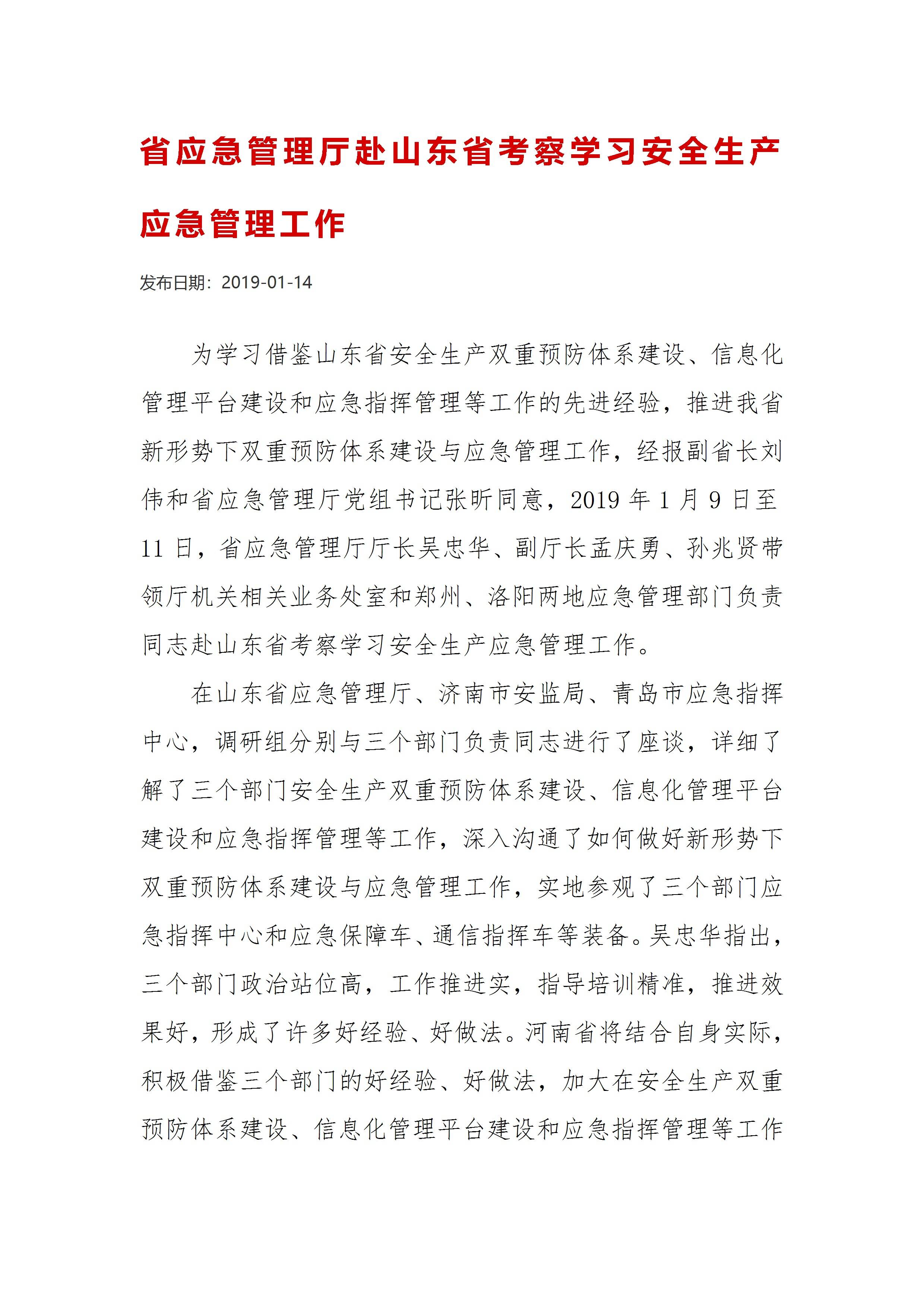 / 省应急管理厅赴山东省考察学习安全生产应急管理工作