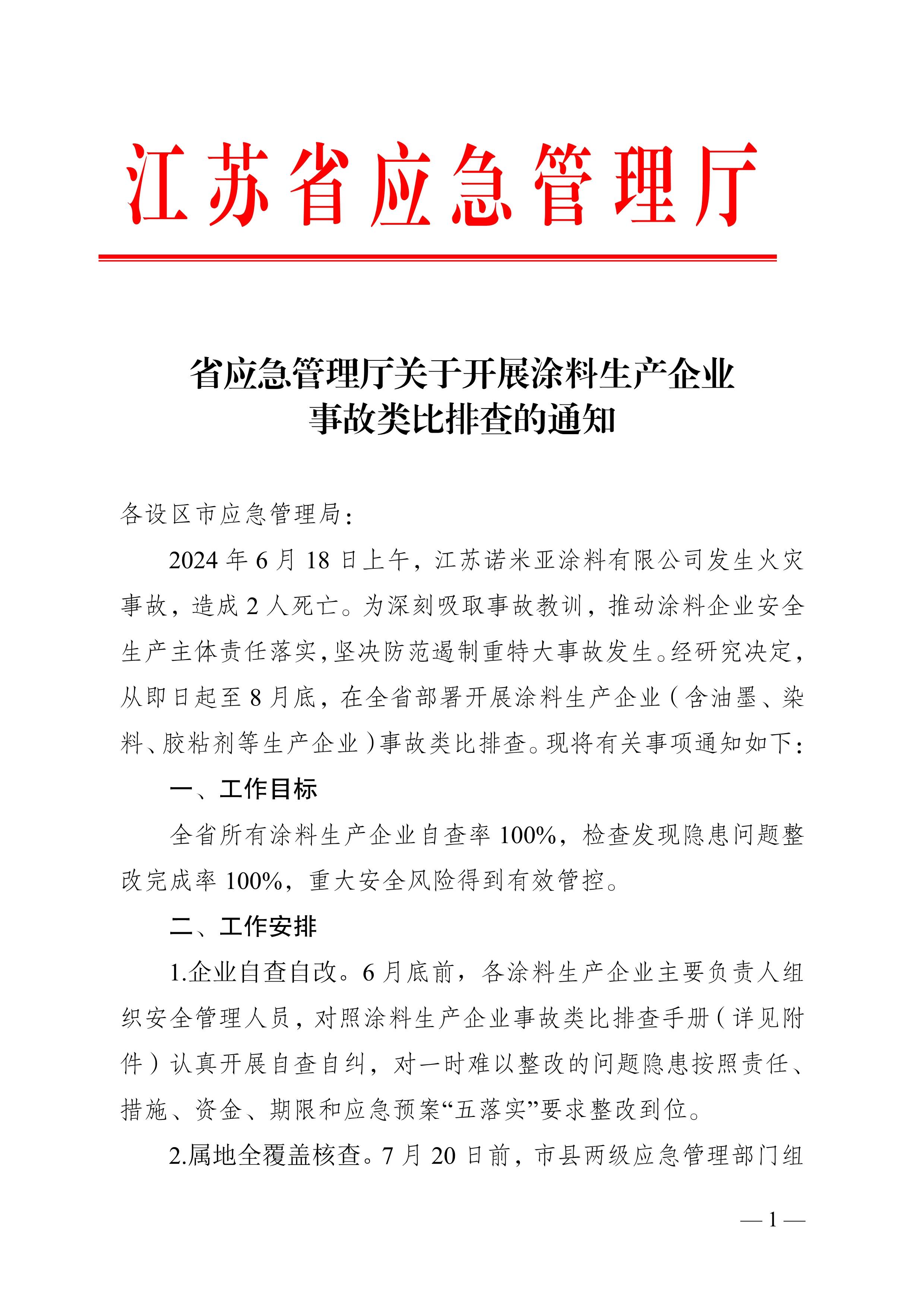 / 省应急管理厅关于开展涂料生产企业事故类比排查的通知