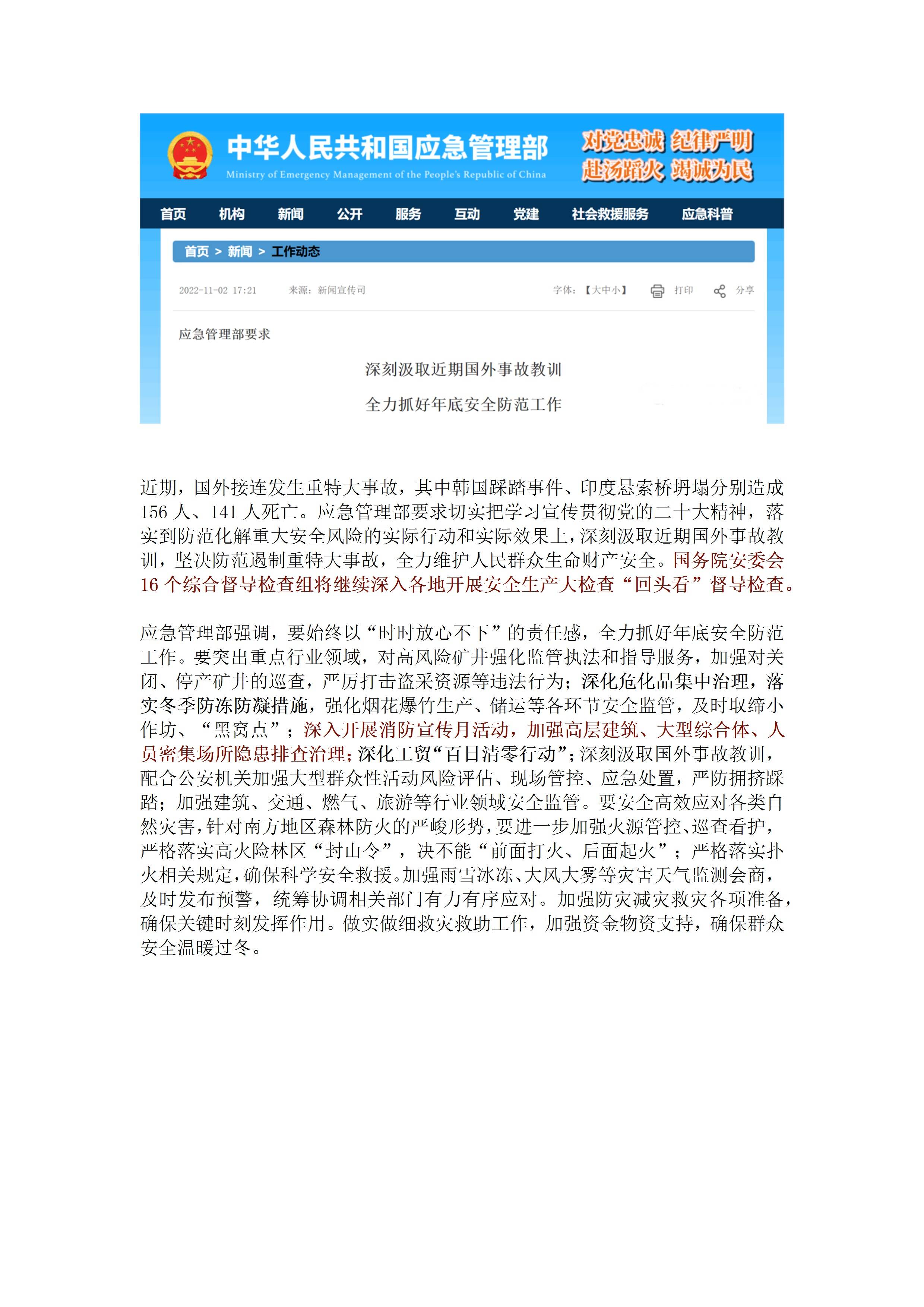 / 应急管理部关于全力抓好年底安全防范工作的通知