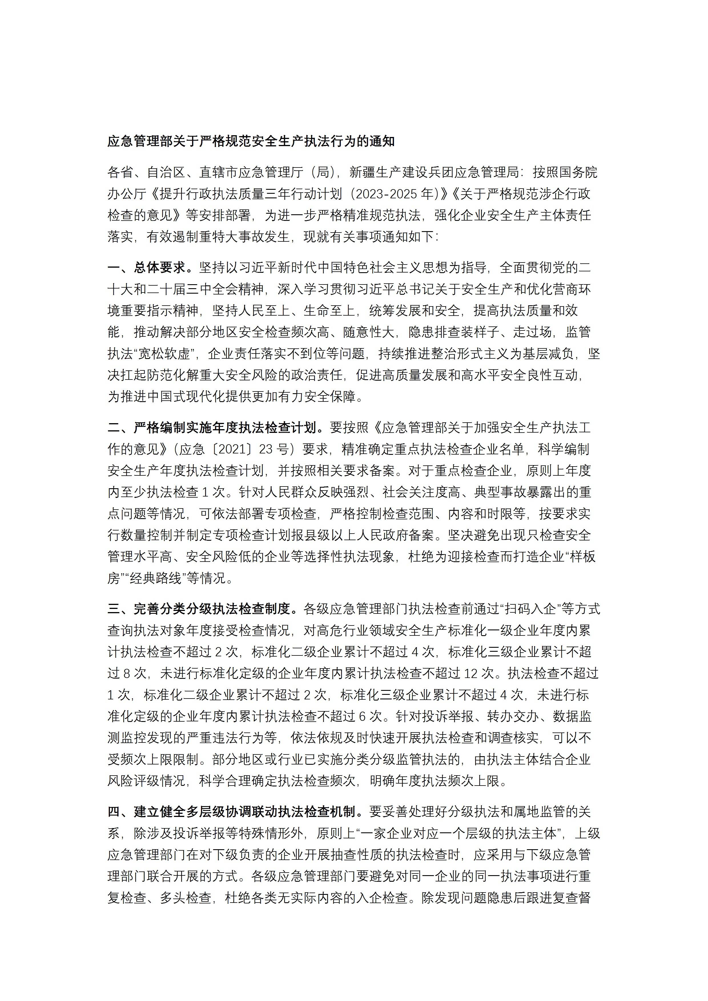 应急管理部关于严格规范安全生产执法行为的通知(应急〔2025〕11号)