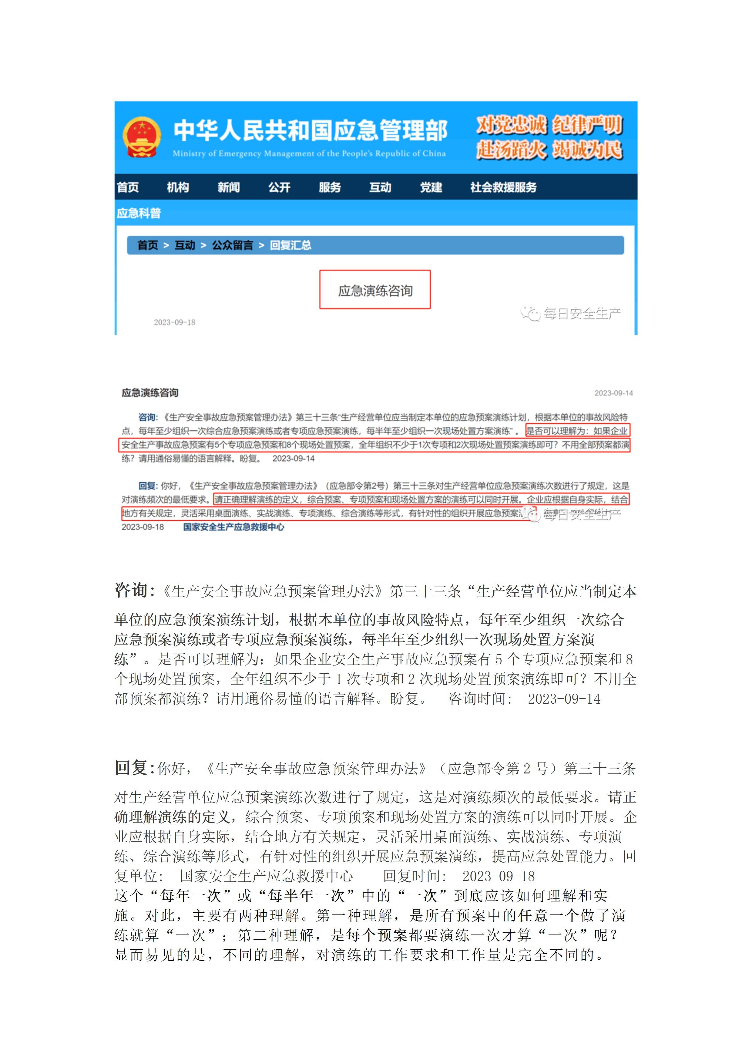 / 应急管理部已明确综合预案、专项预案和现场处置方案的演练可以同时开展