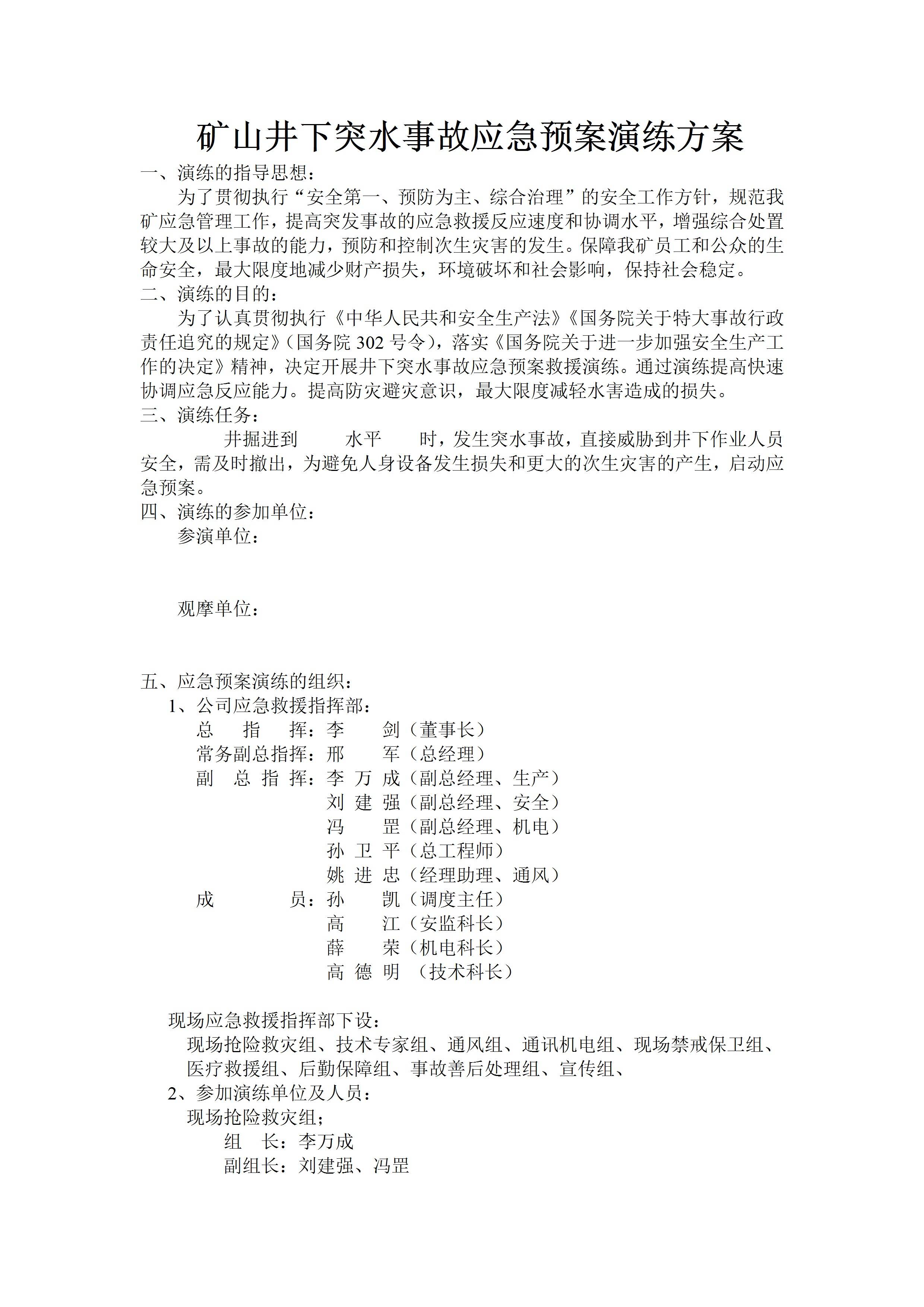/ 矿山井下突水事故应急预案演练方案