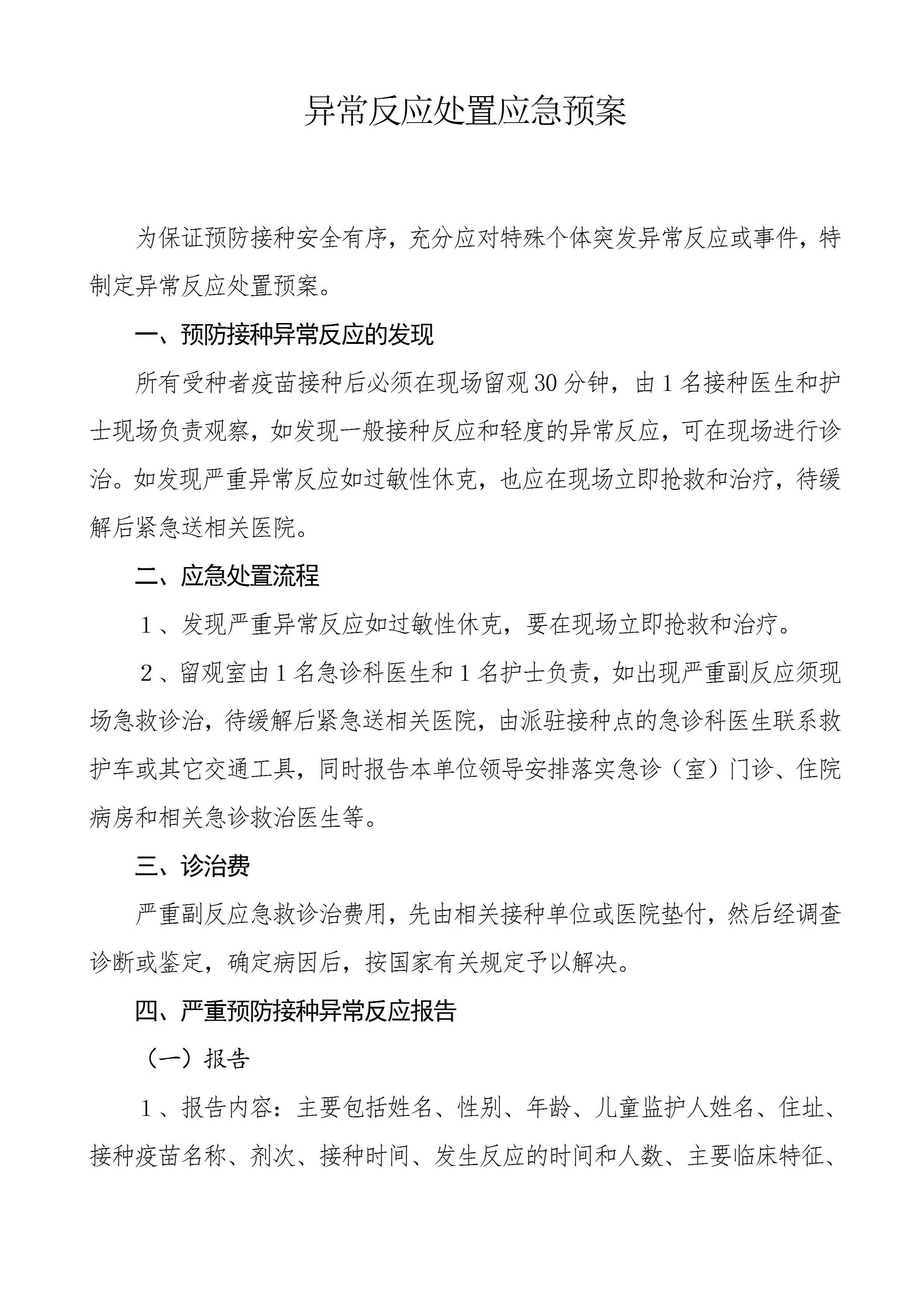 接种异常反应处置应急预案