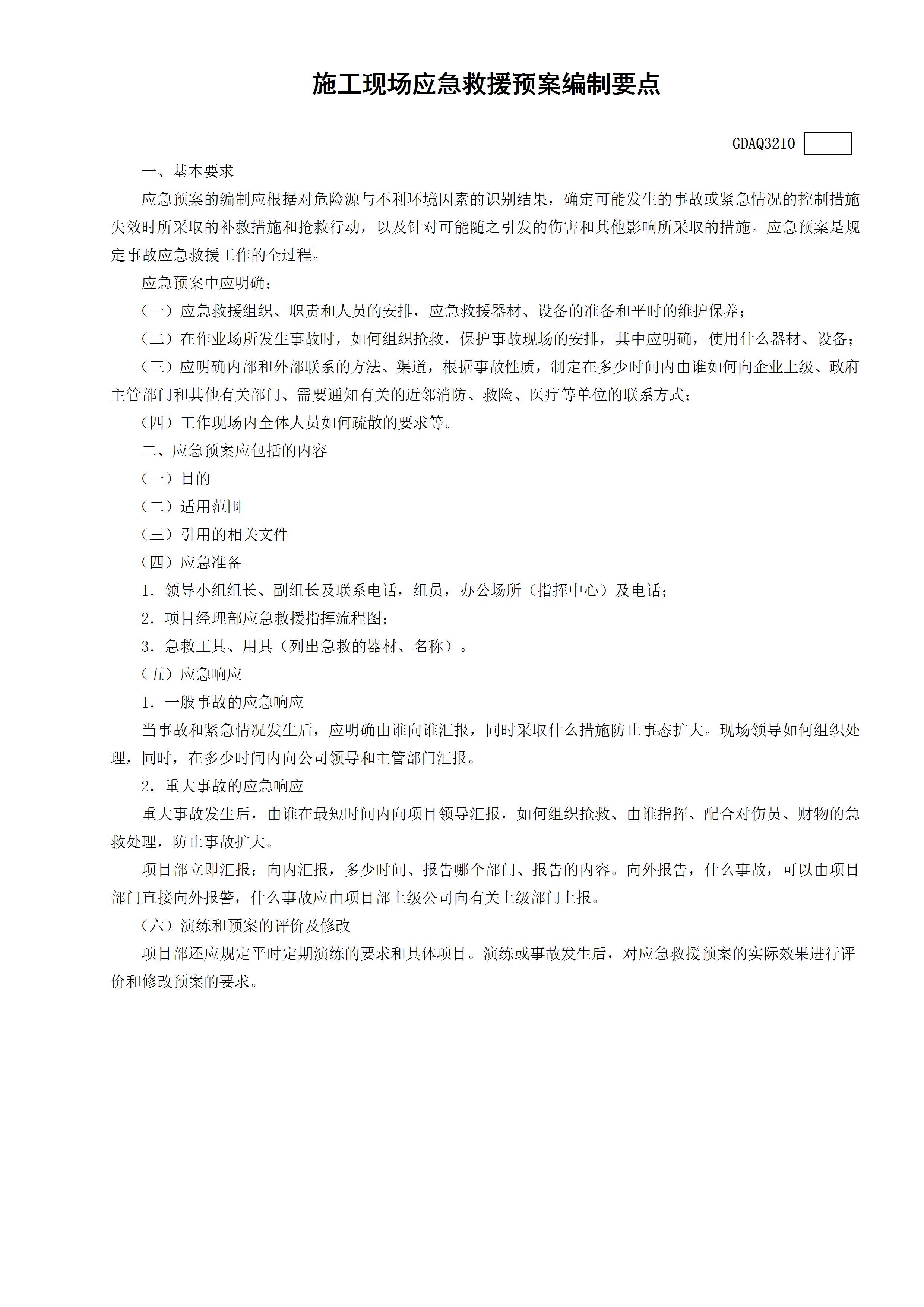 / 施工现场应急救援预案编制要点GDAQ3210