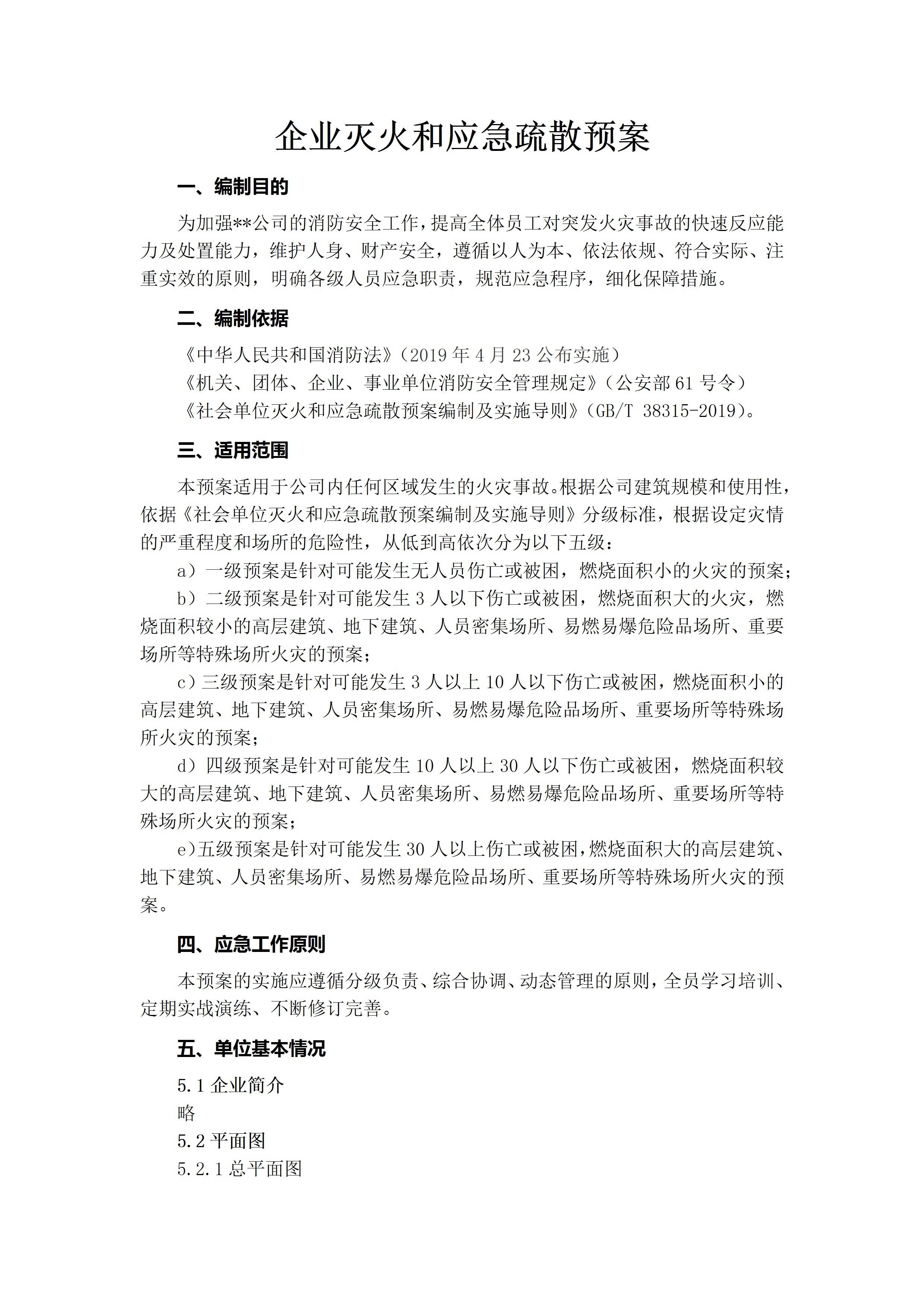 / 企业灭火和应急疏散预案(参照GB38315-2019编制)