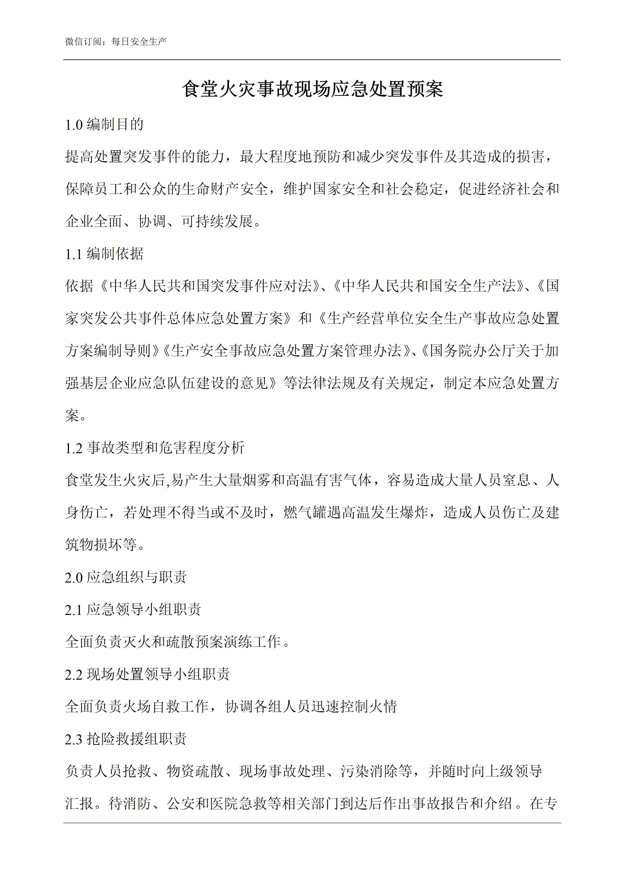 食堂火灾事故现场应急处置预案