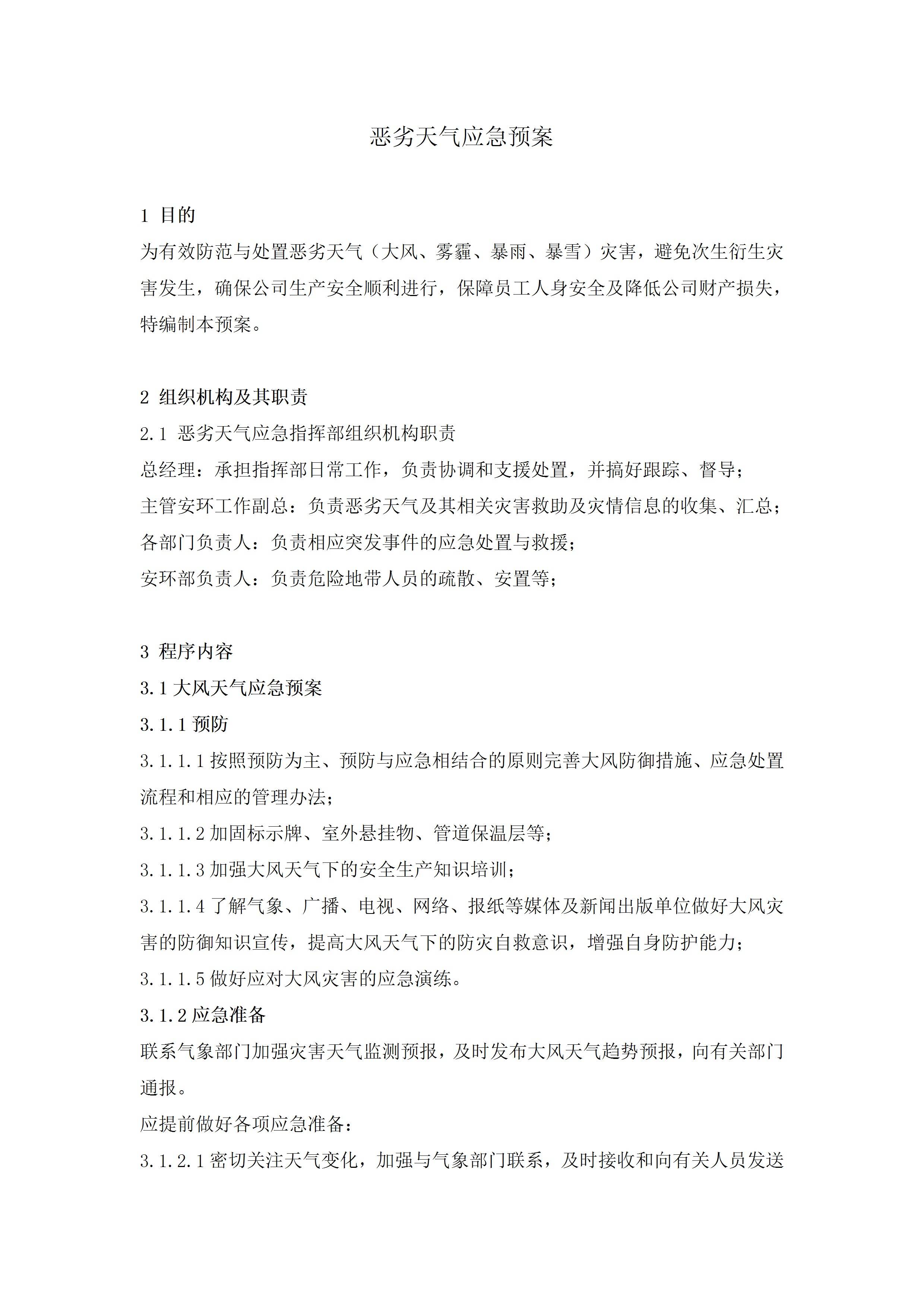 【方案】恶劣天气(大风、雾霾、暴雨)应急预案
