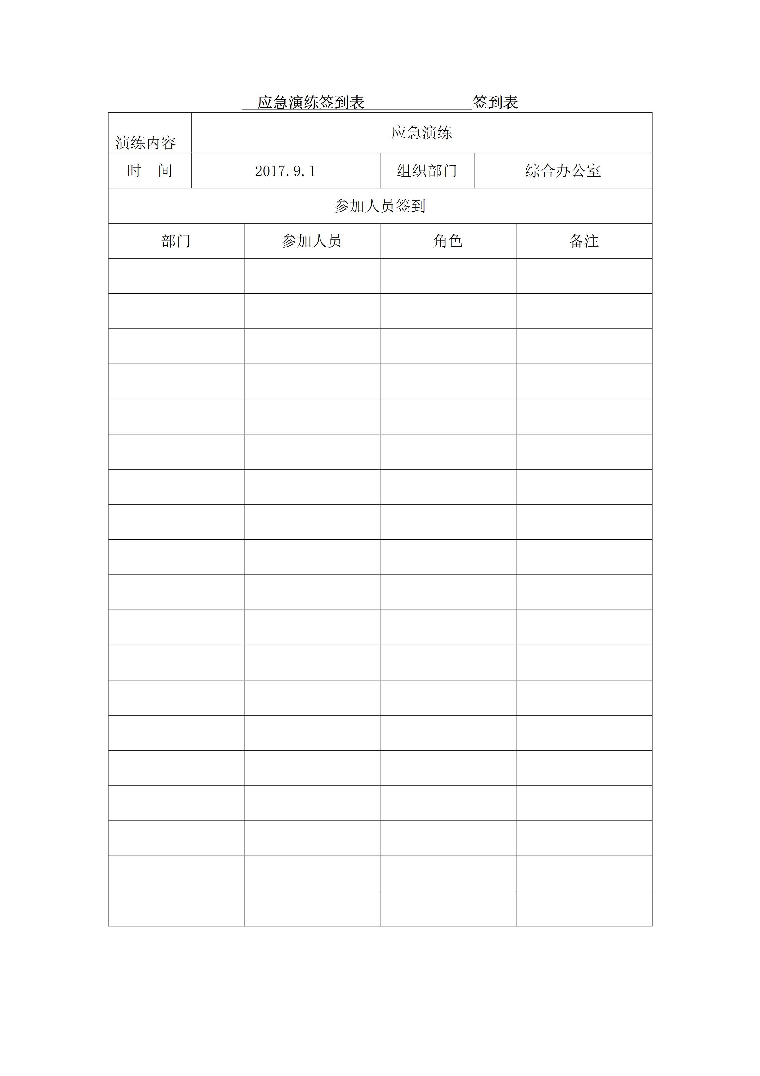 应急预案演练签到表