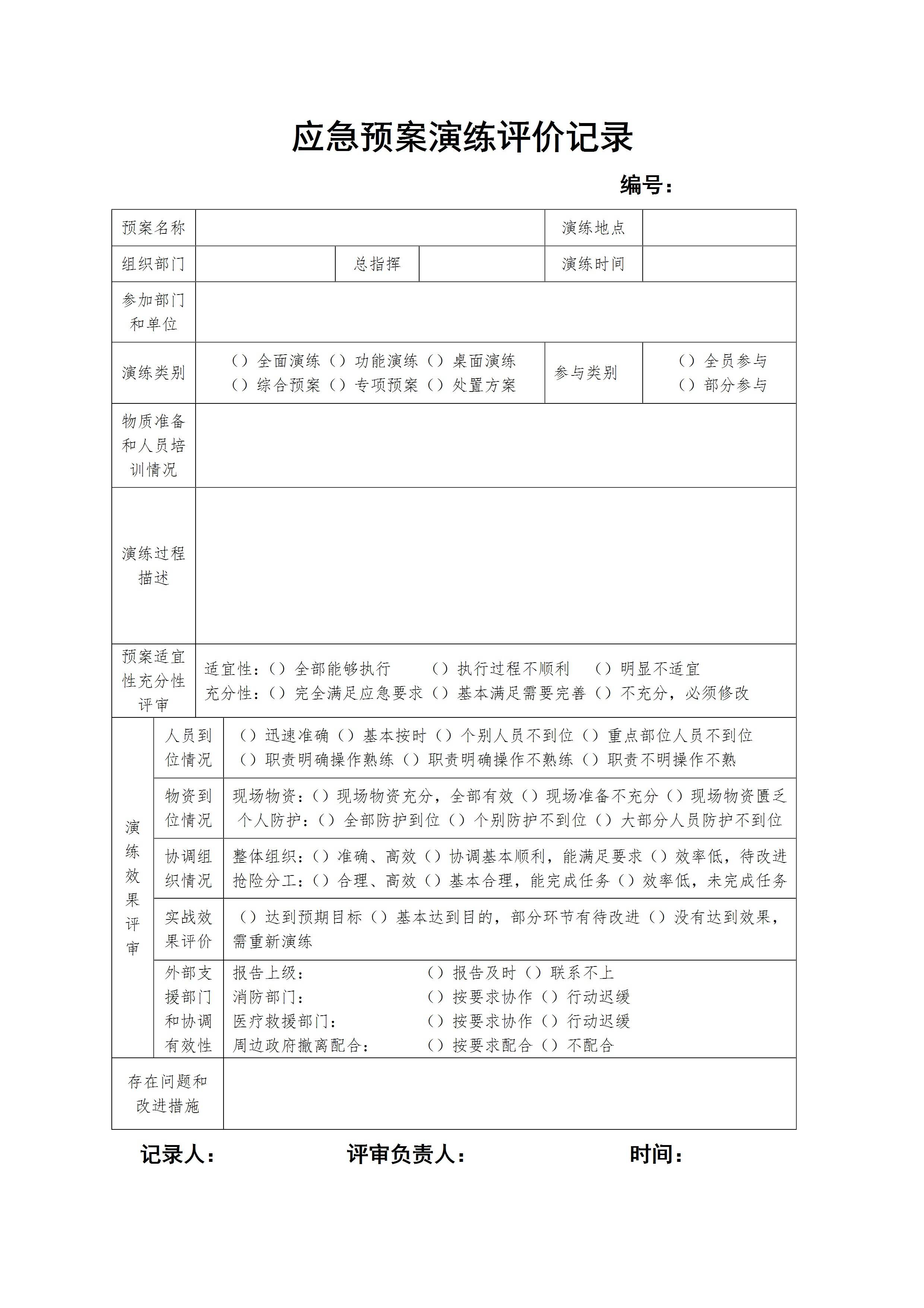 应急预案演练评价记录