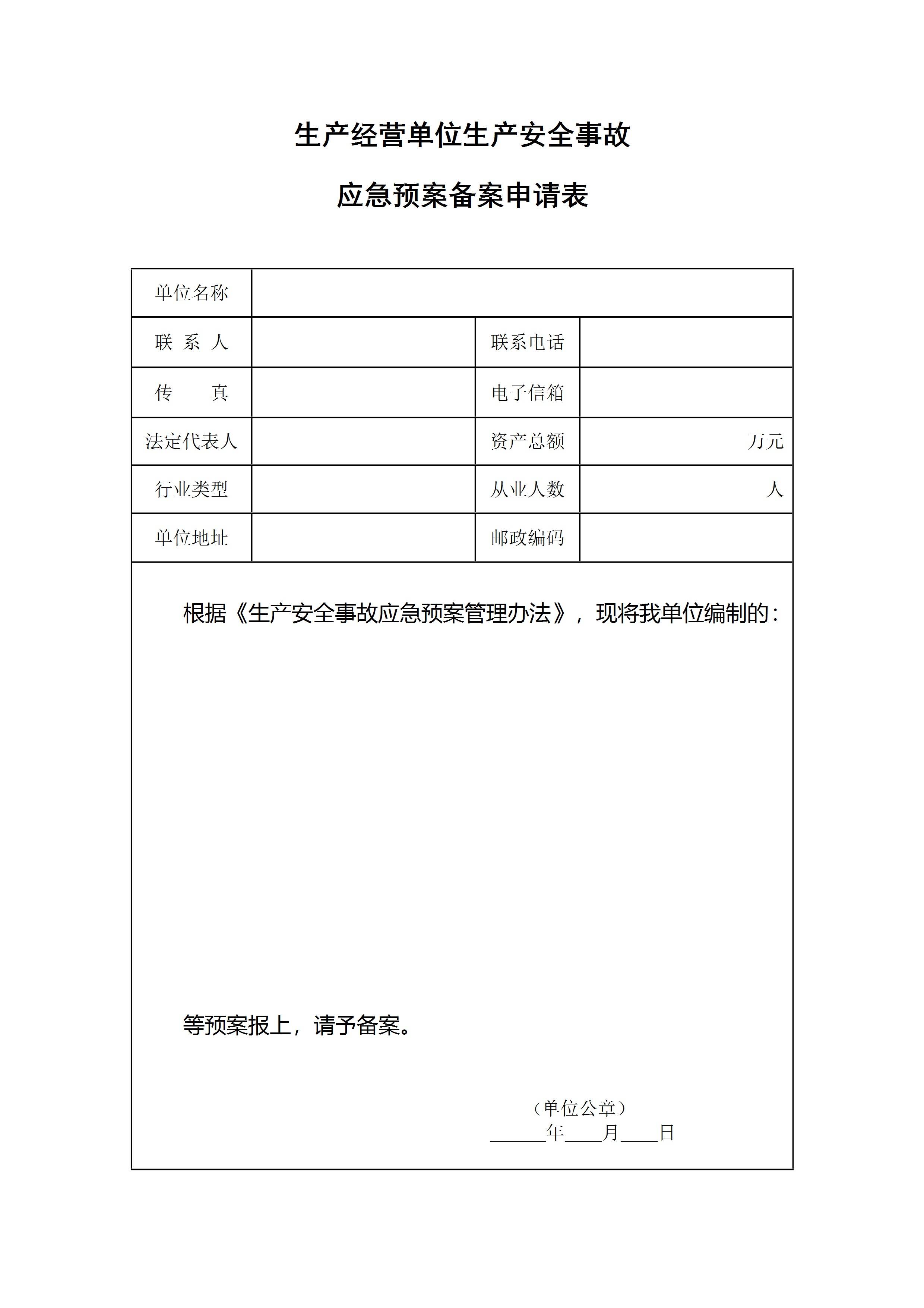 / 应急预案备案表格