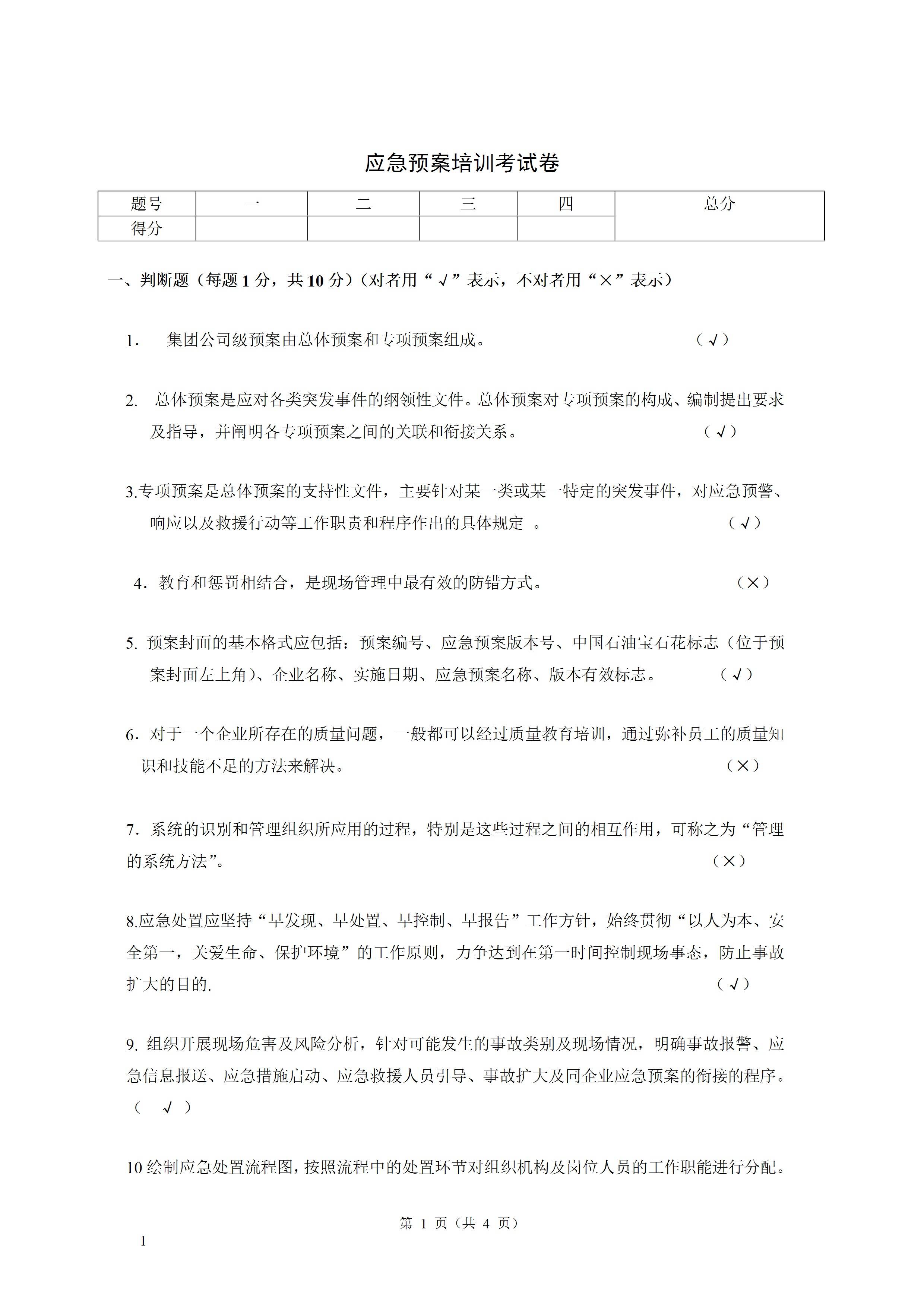 / 应急预案培训考试题 答案