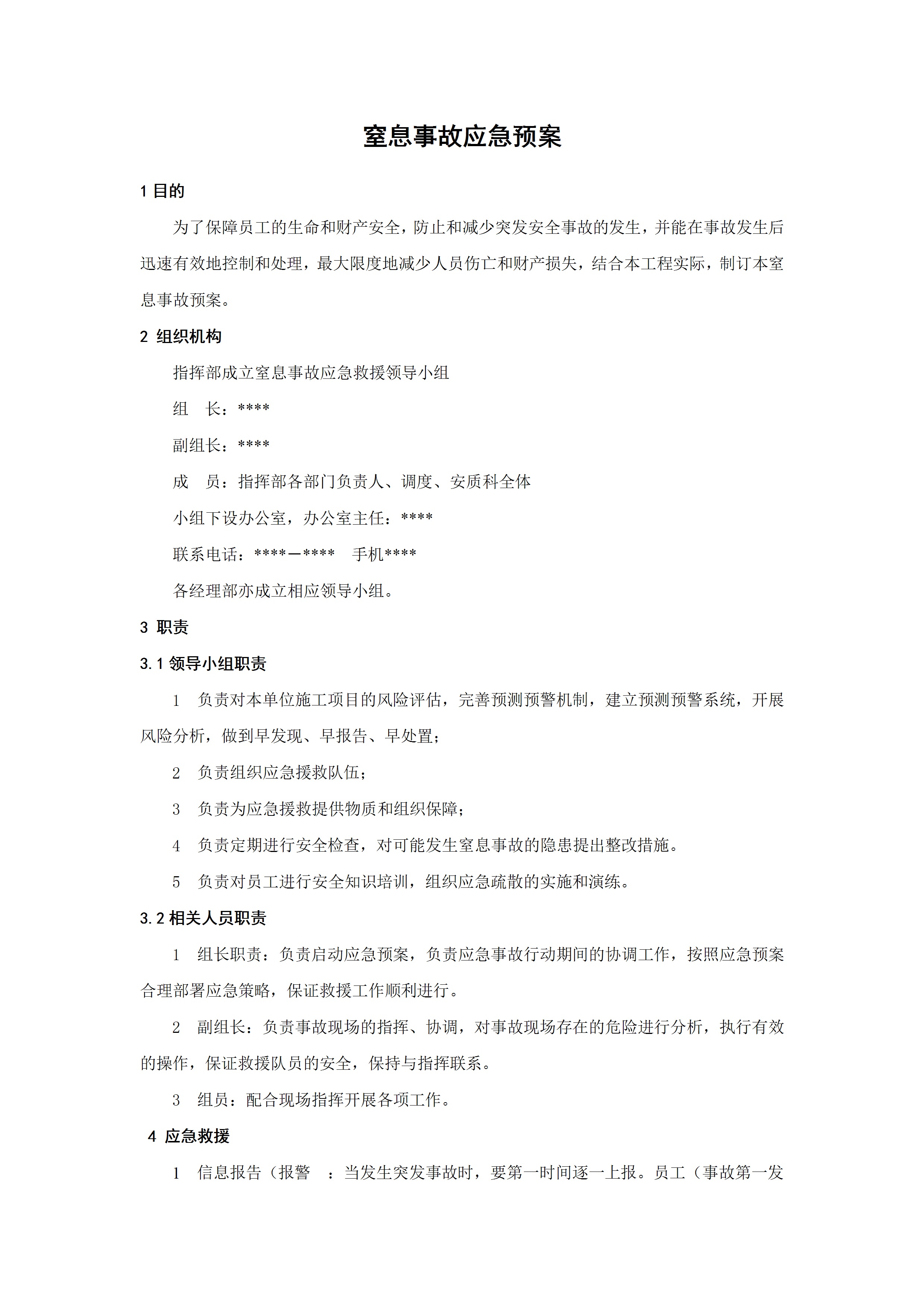 窒息事故应急预案