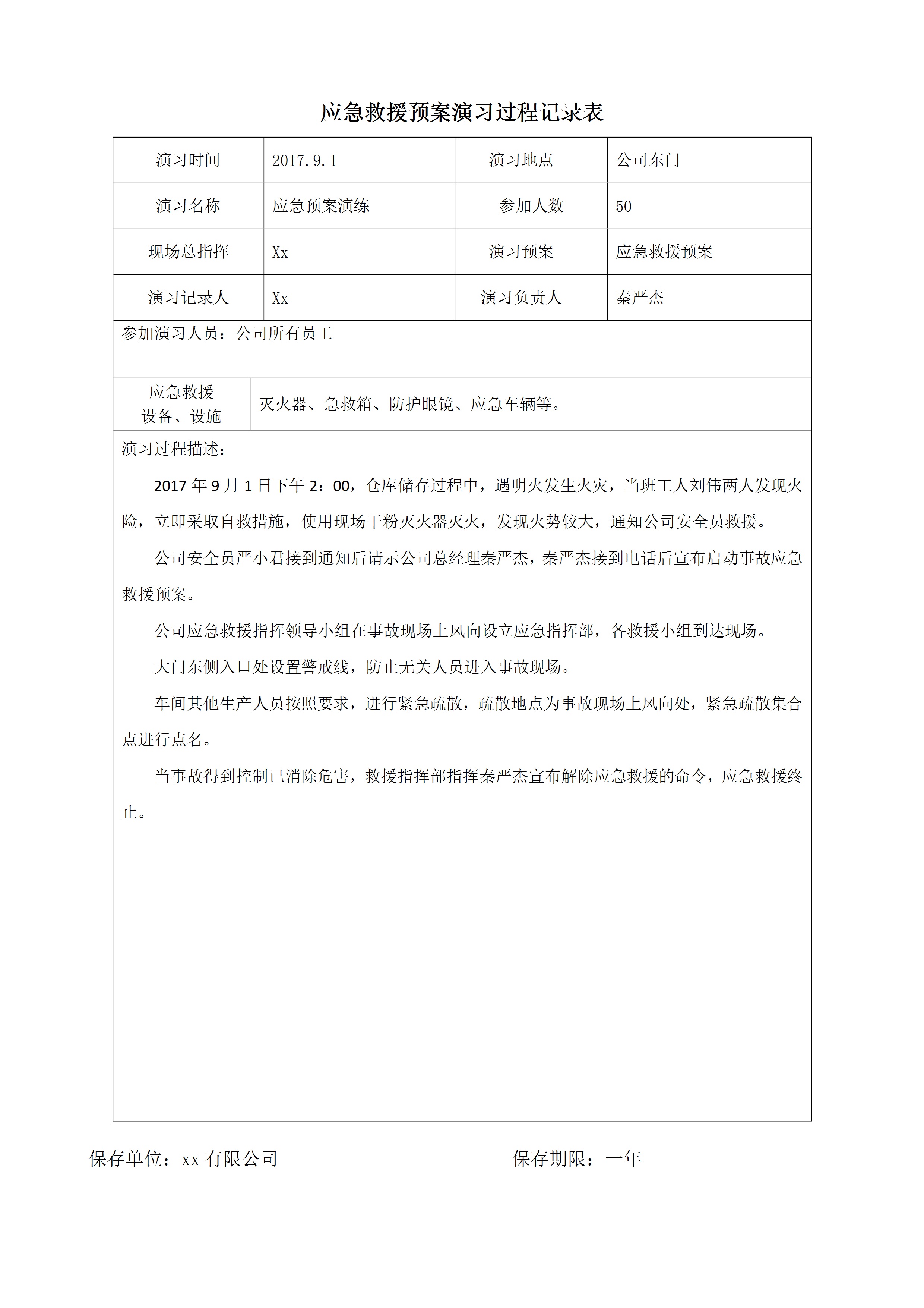 应急救援预案演习过程记录表