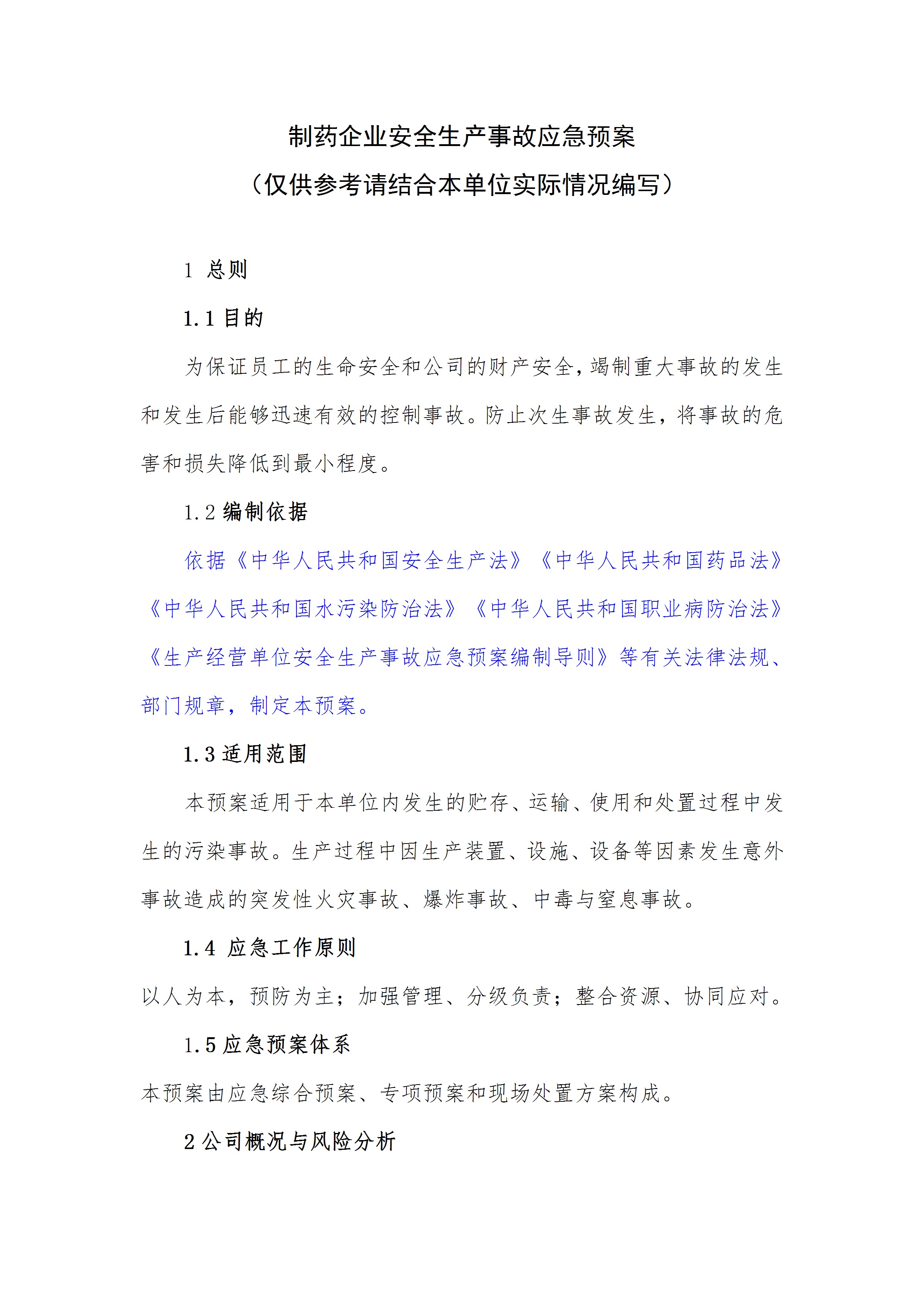 / 制药企业安全生产事故应急预案