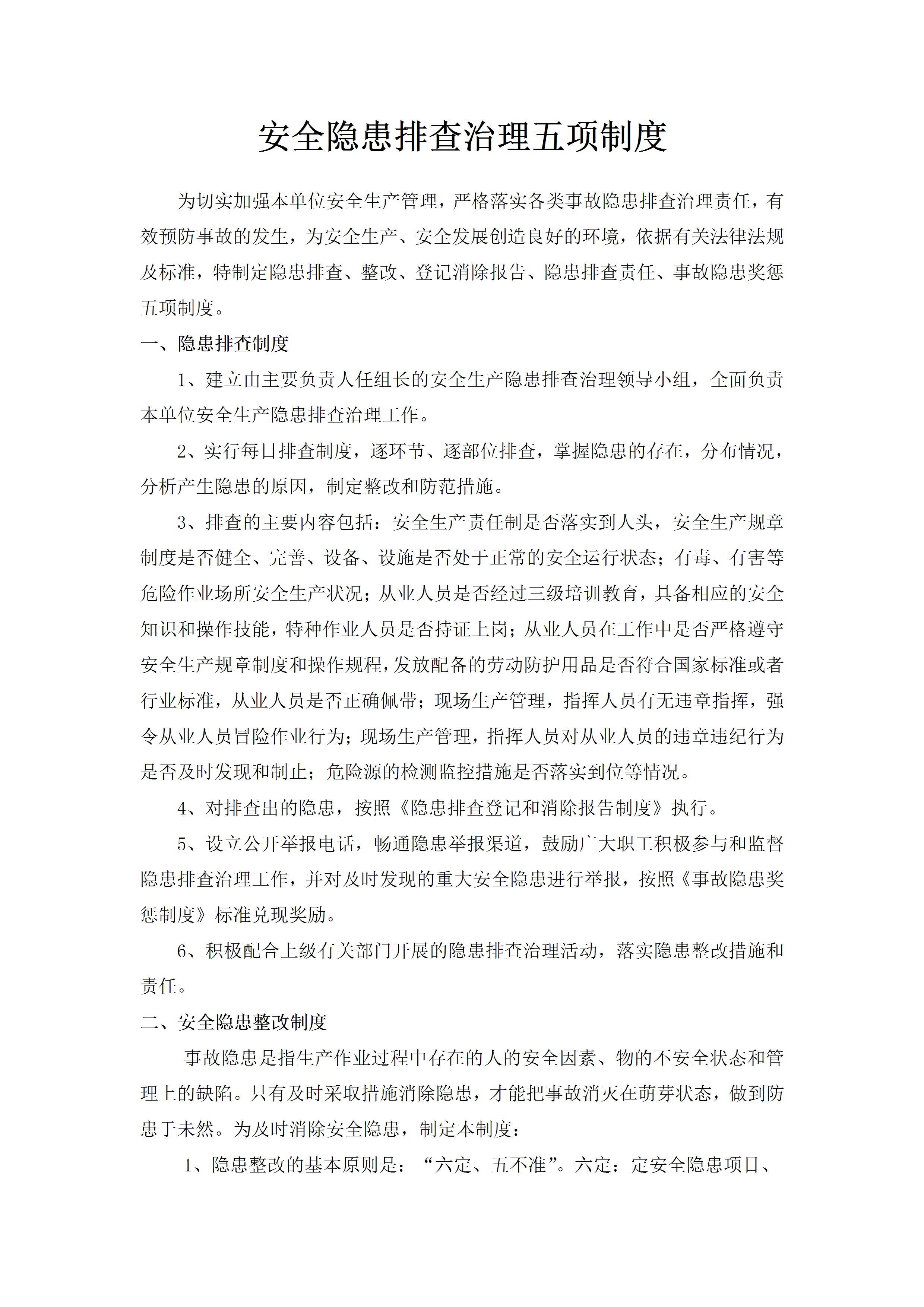 / 安全隐患排查治理五项制度,模板四[文档]