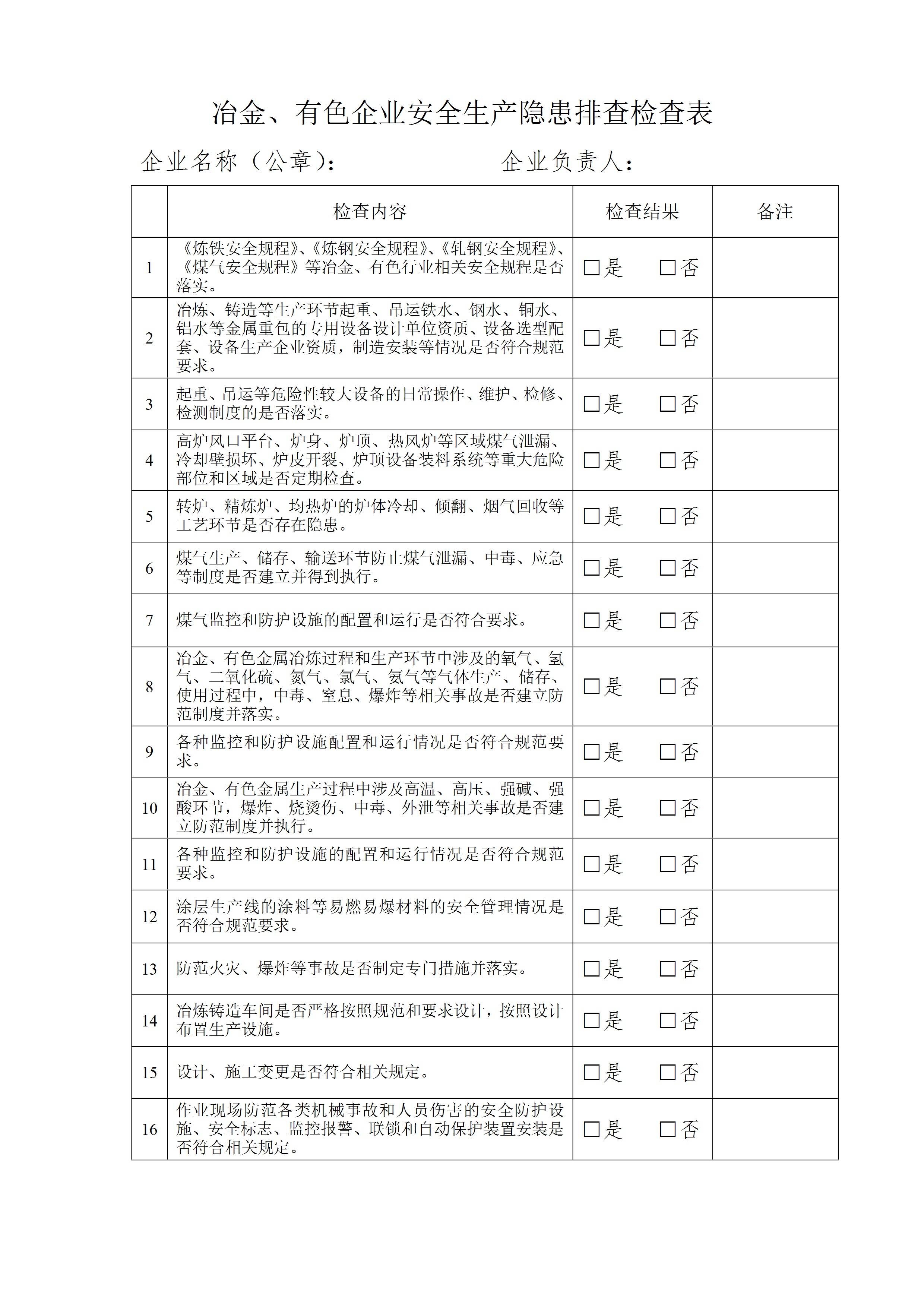 / 化工企业安全生产隐患排查检查表(12页)[文档]