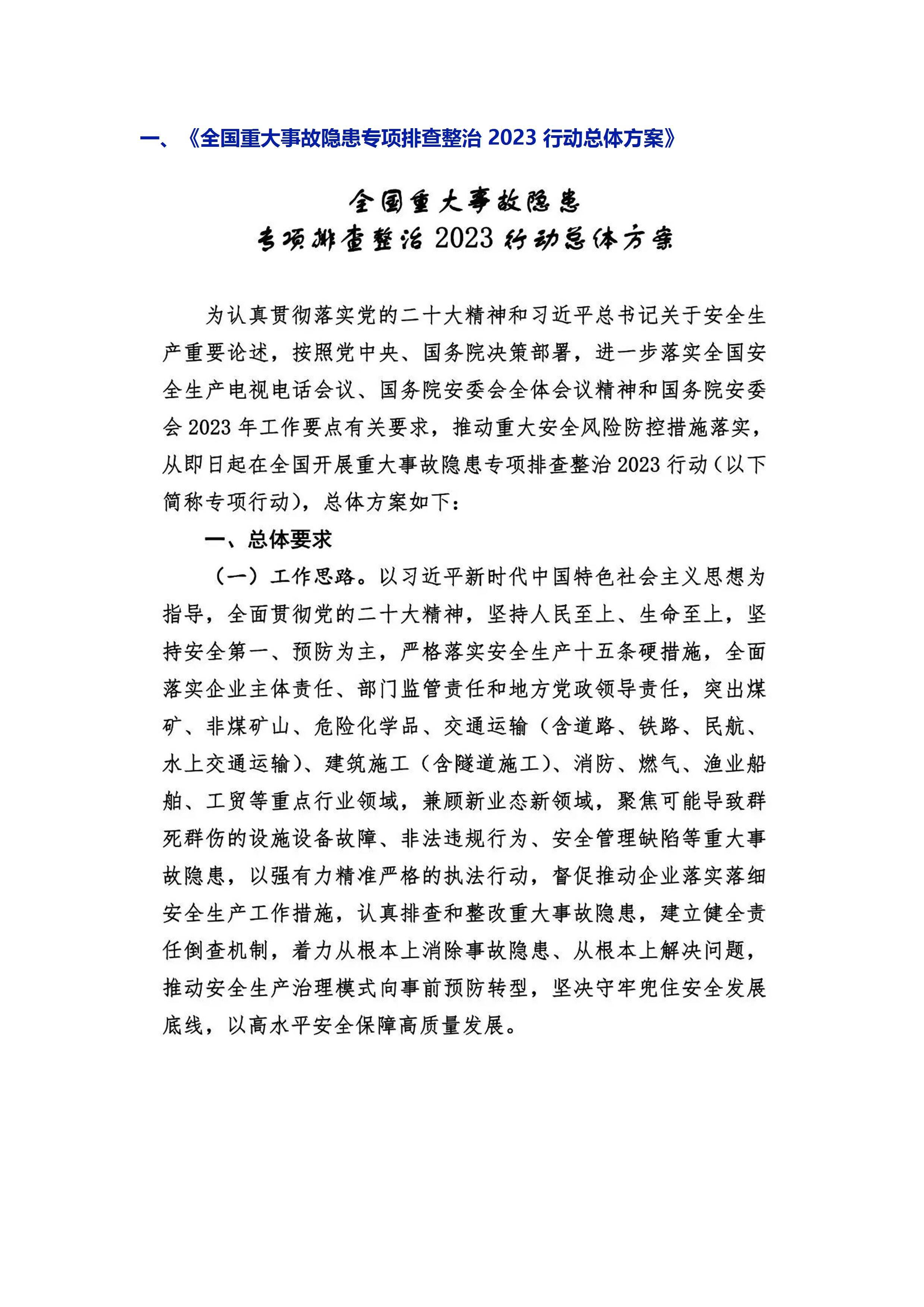 2023《全国重大事故隐患专项排查整治2023行动总体方案》[文档]