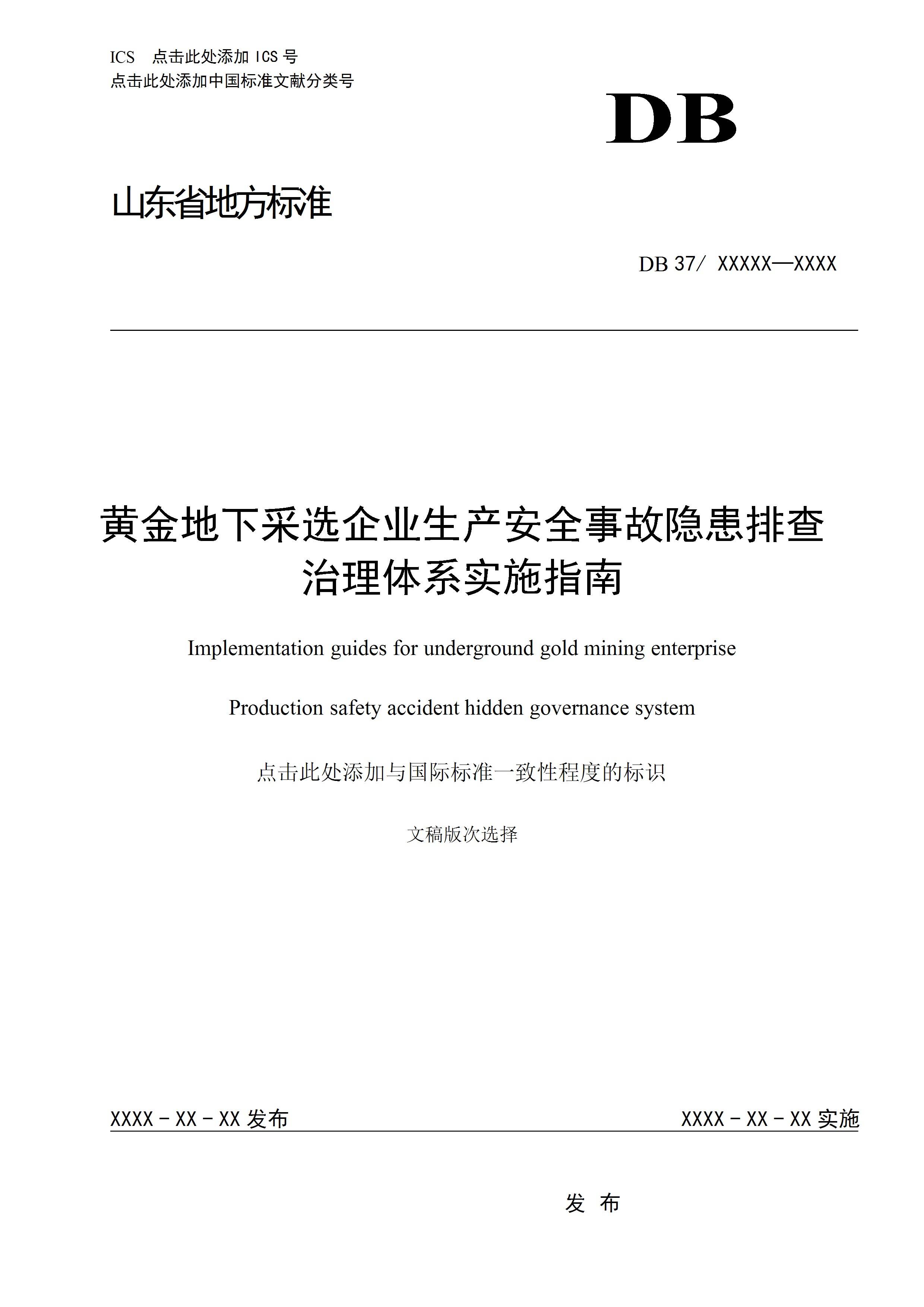 / 黄金地下采选企业隐患排查治理体系建设实施指南(征求意见稿)[文档]