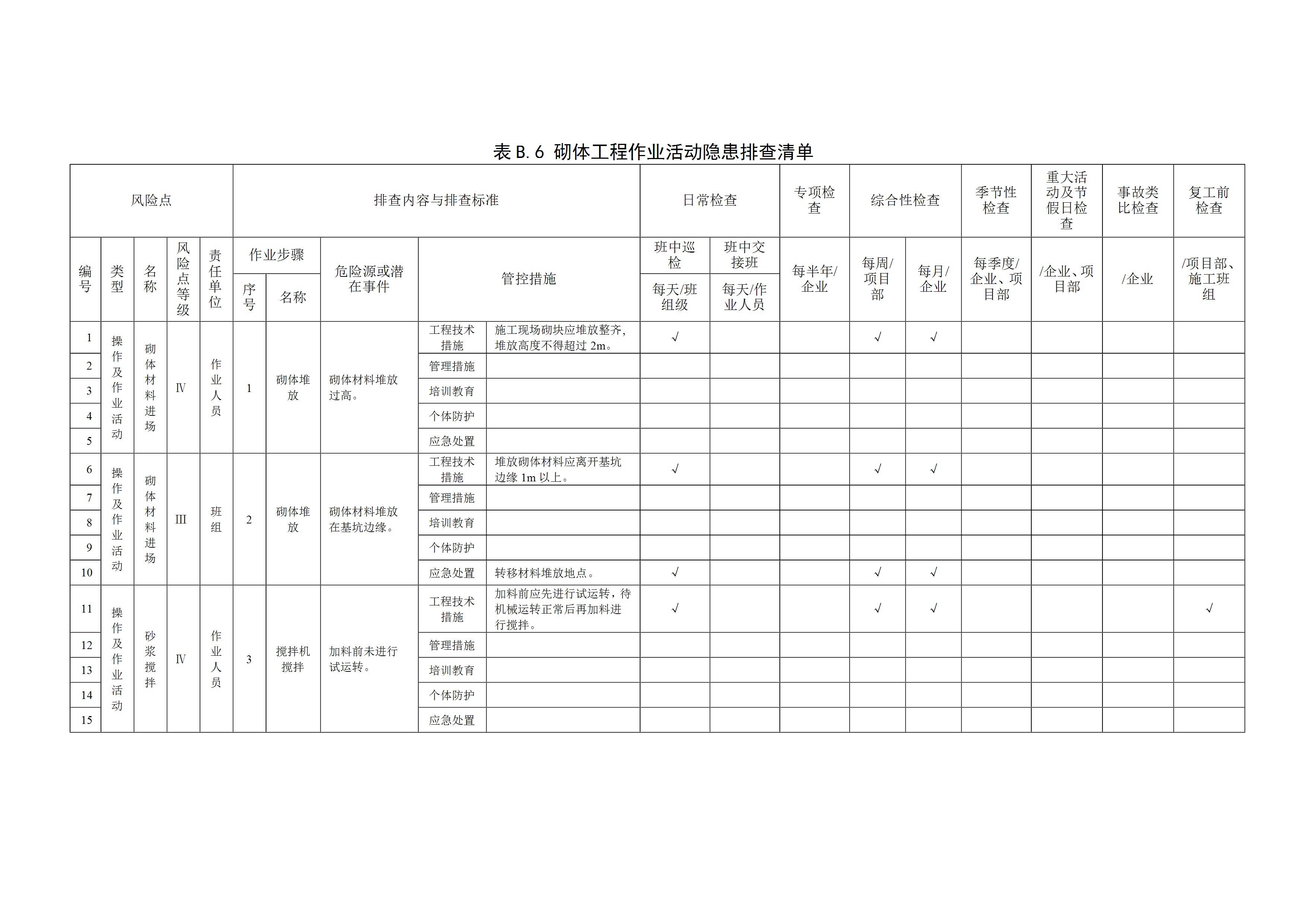 砌体工程作业活动隐患排查清单[文档]