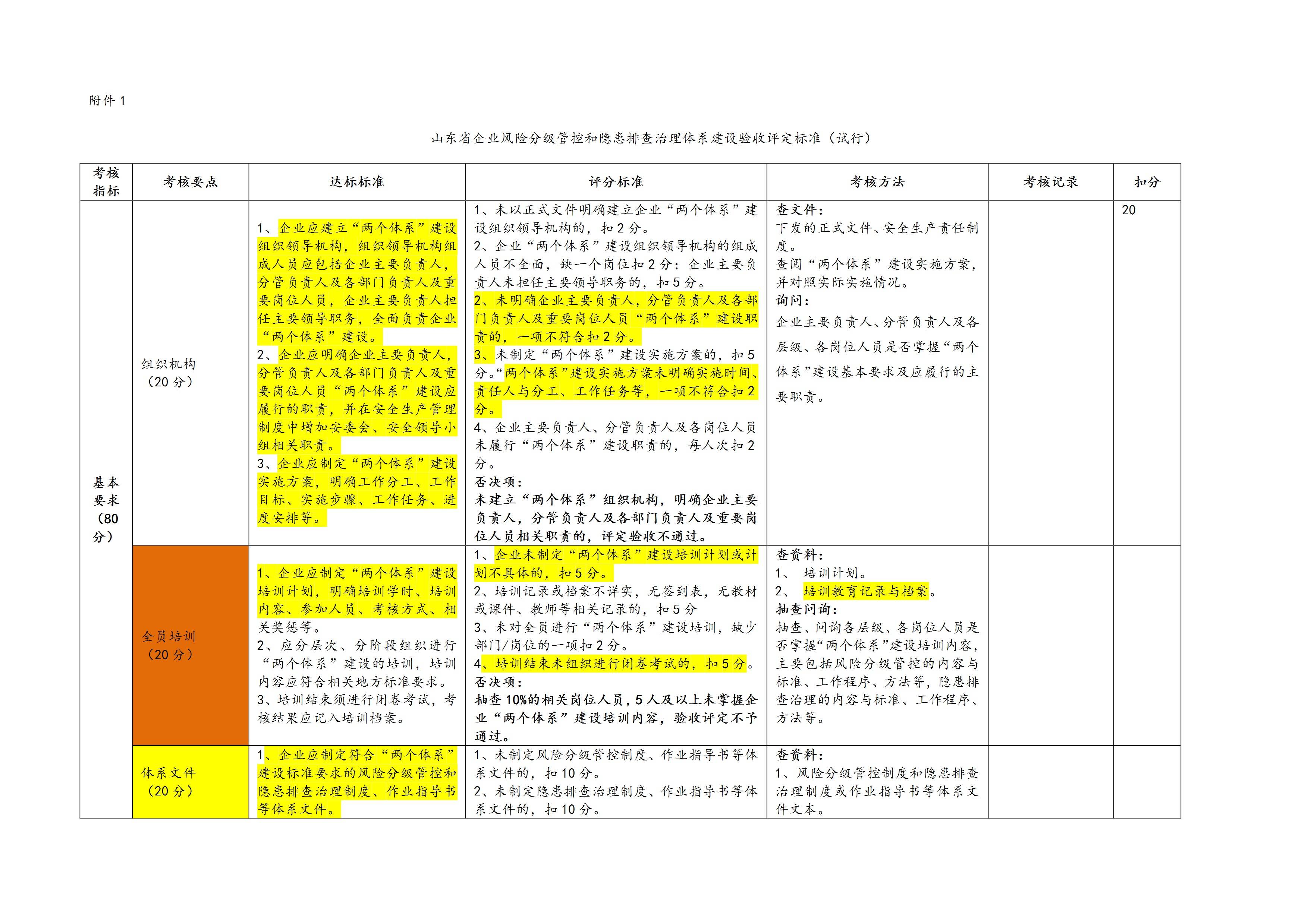 山东省企业风险分级管控和隐患排查治理体系建设验收评定标准[文档]