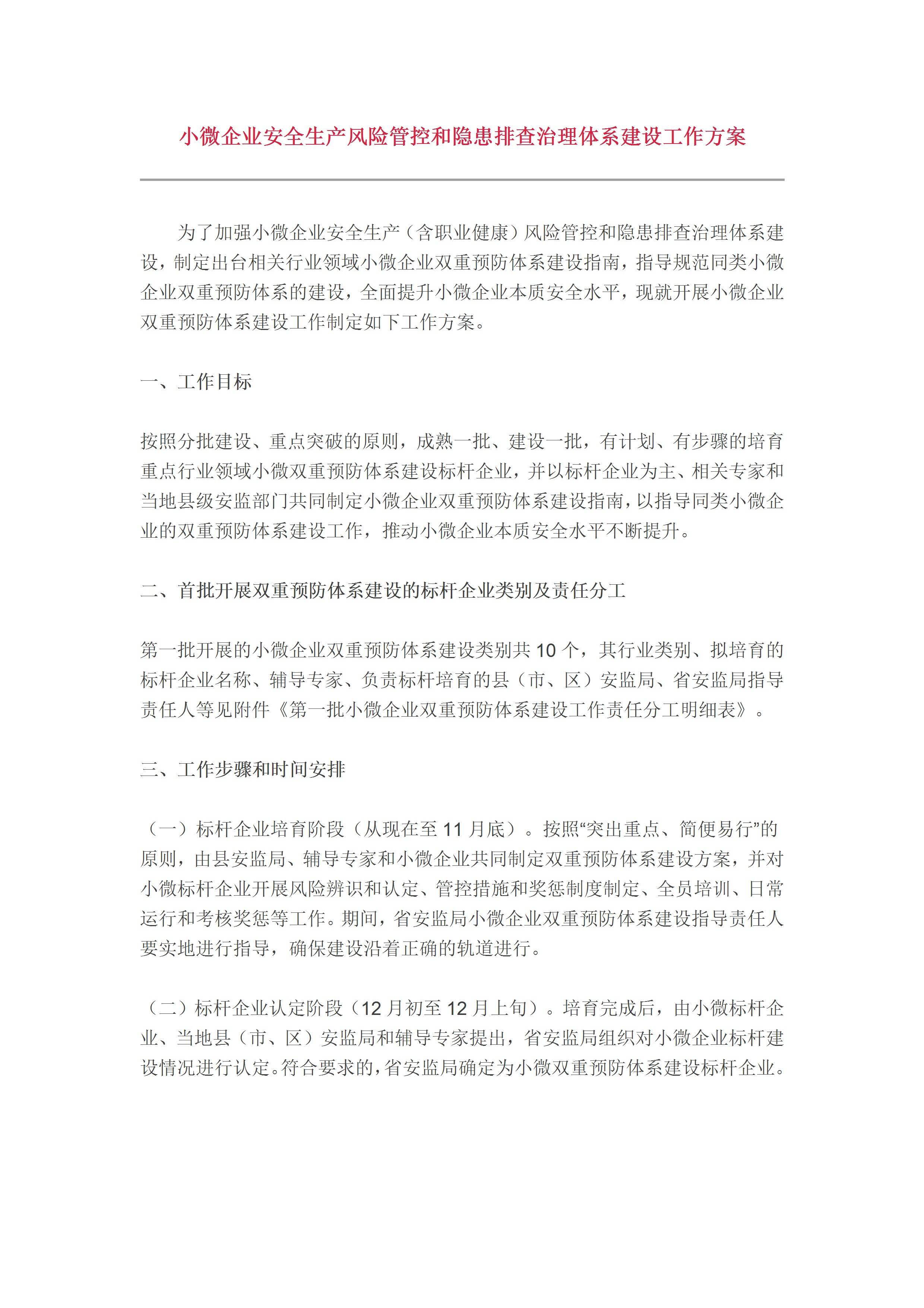 / 小微企业安全生产风险管控和隐患排查治理体系建设工作方案[文档]