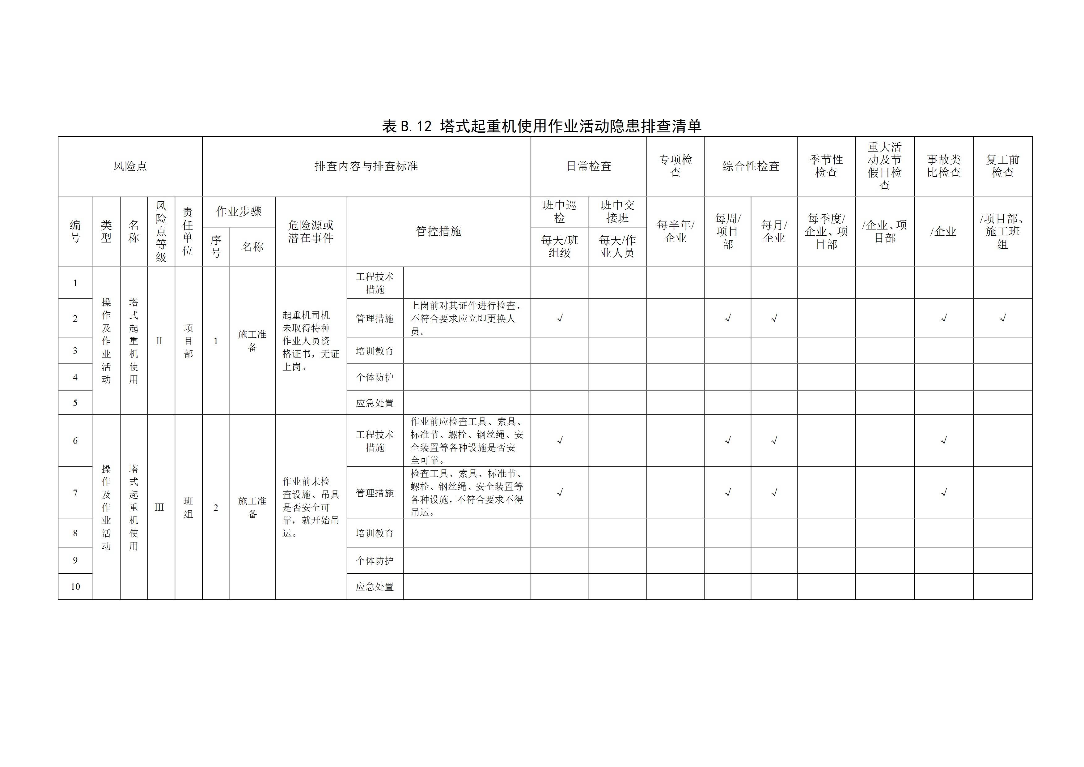 / 塔式起重机使用作业活动隐患排查清单[文档]