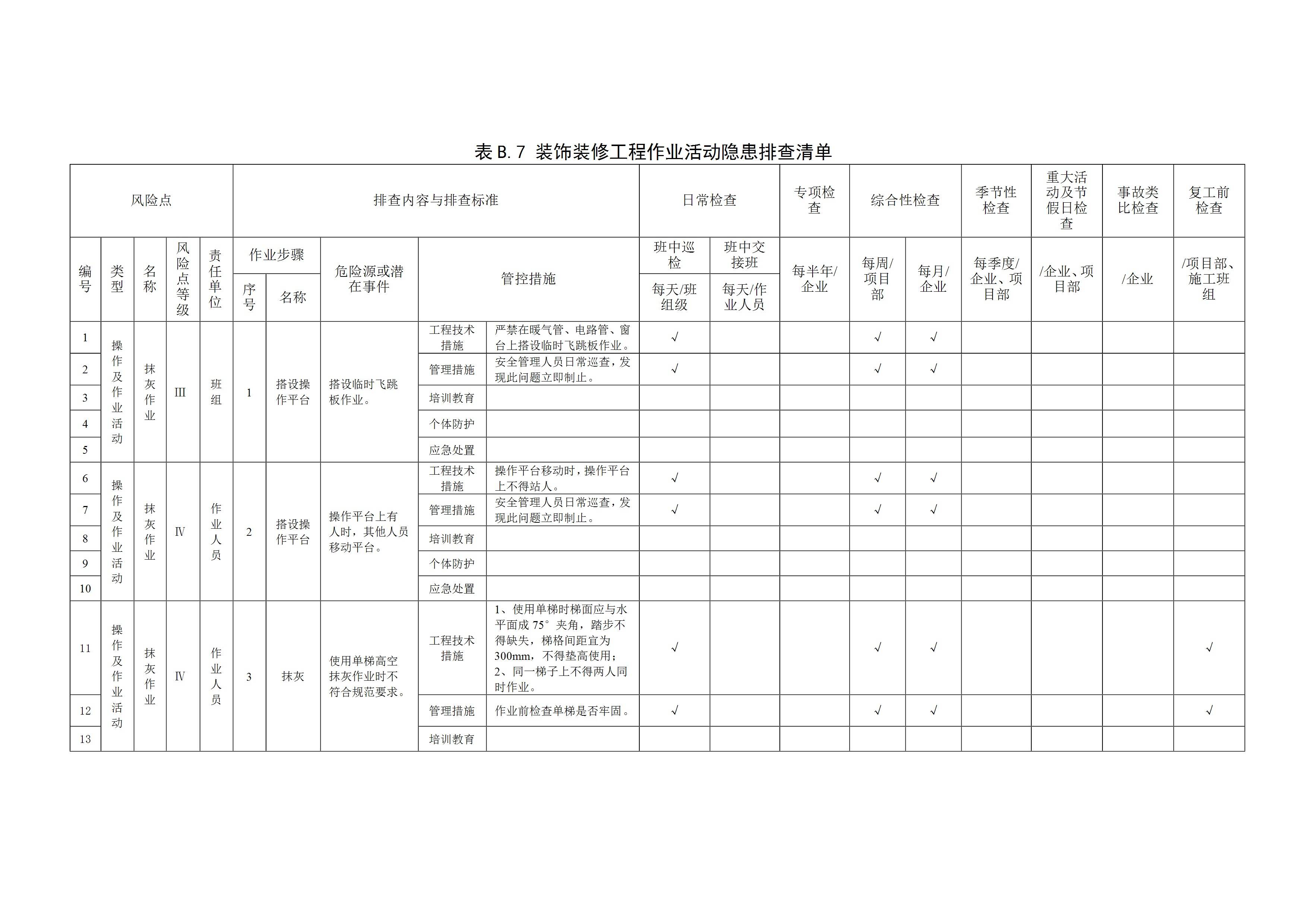 / 装饰装修工程作业活动隐患排查清单[文档]