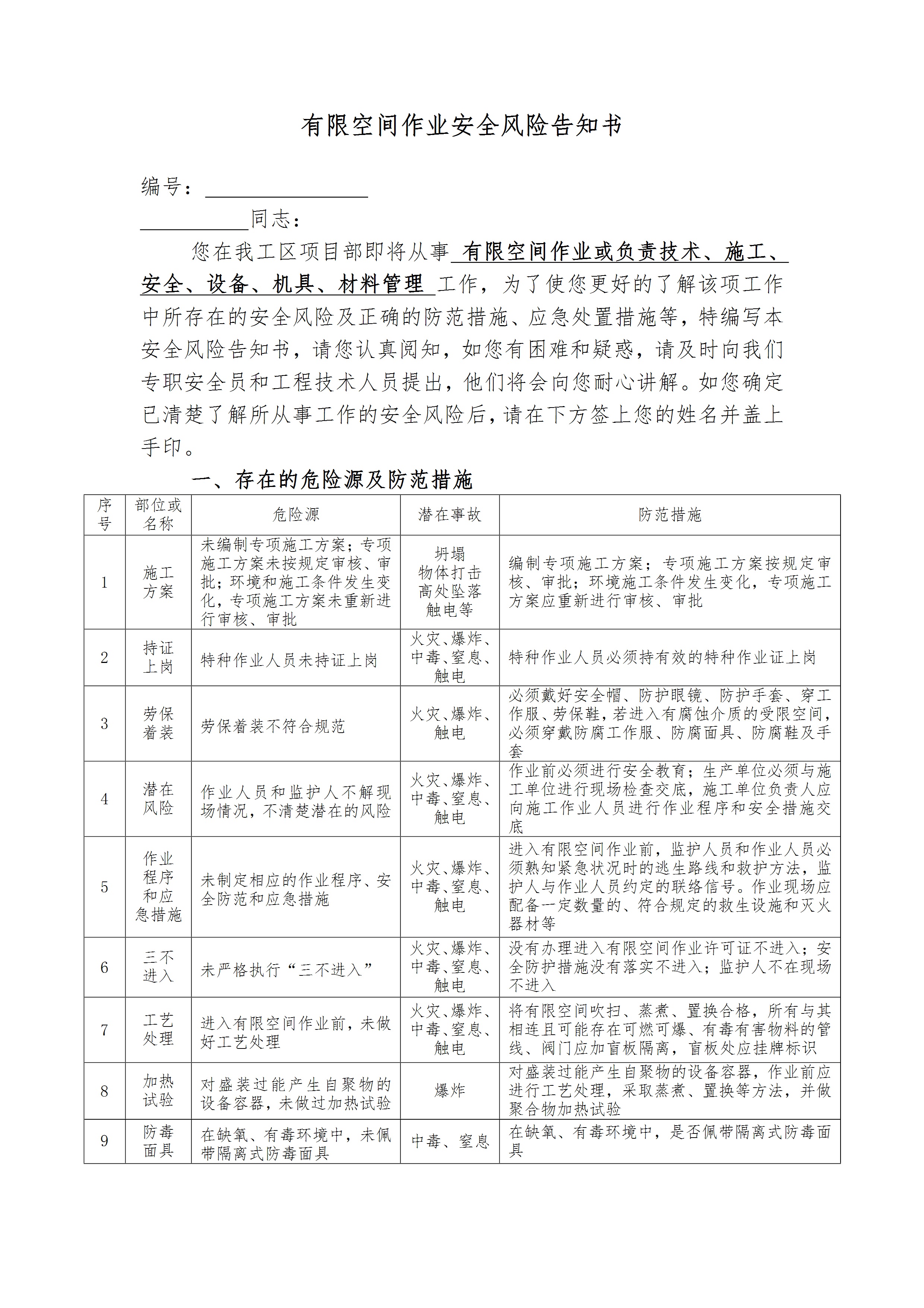 【处置卡模板】安全生产应急处置卡模板(有限空间)
