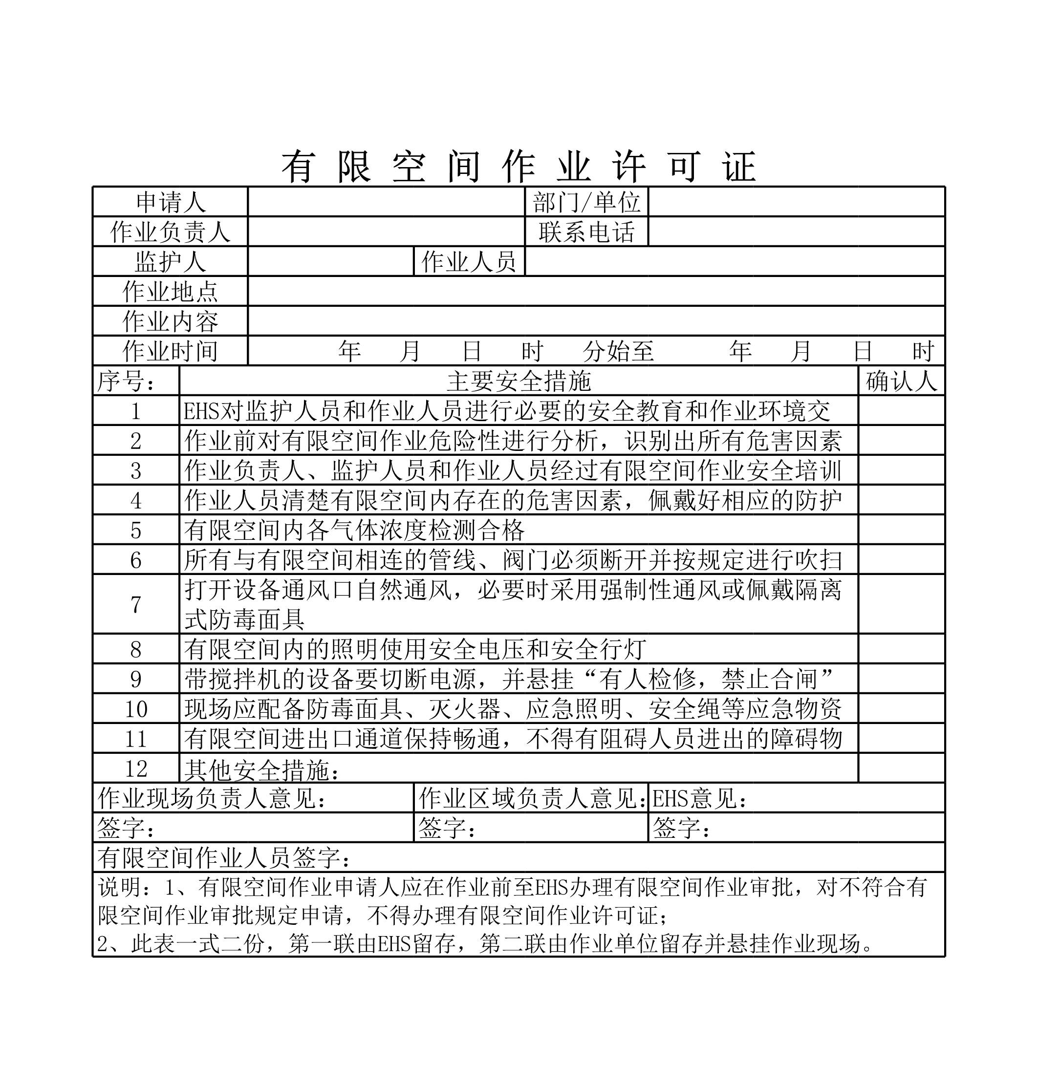 / 有限空间作业许可证