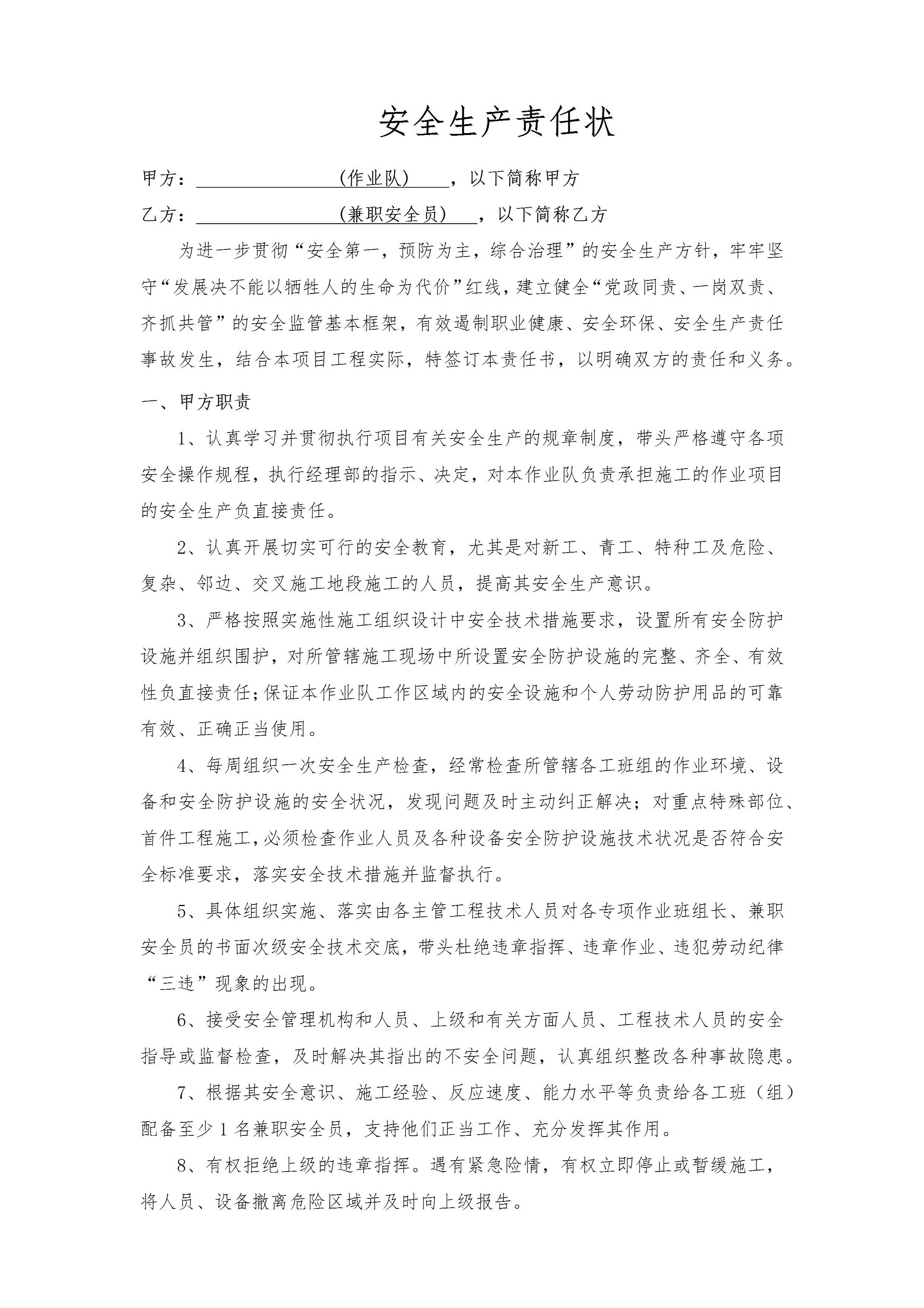 / 安全生产责任状