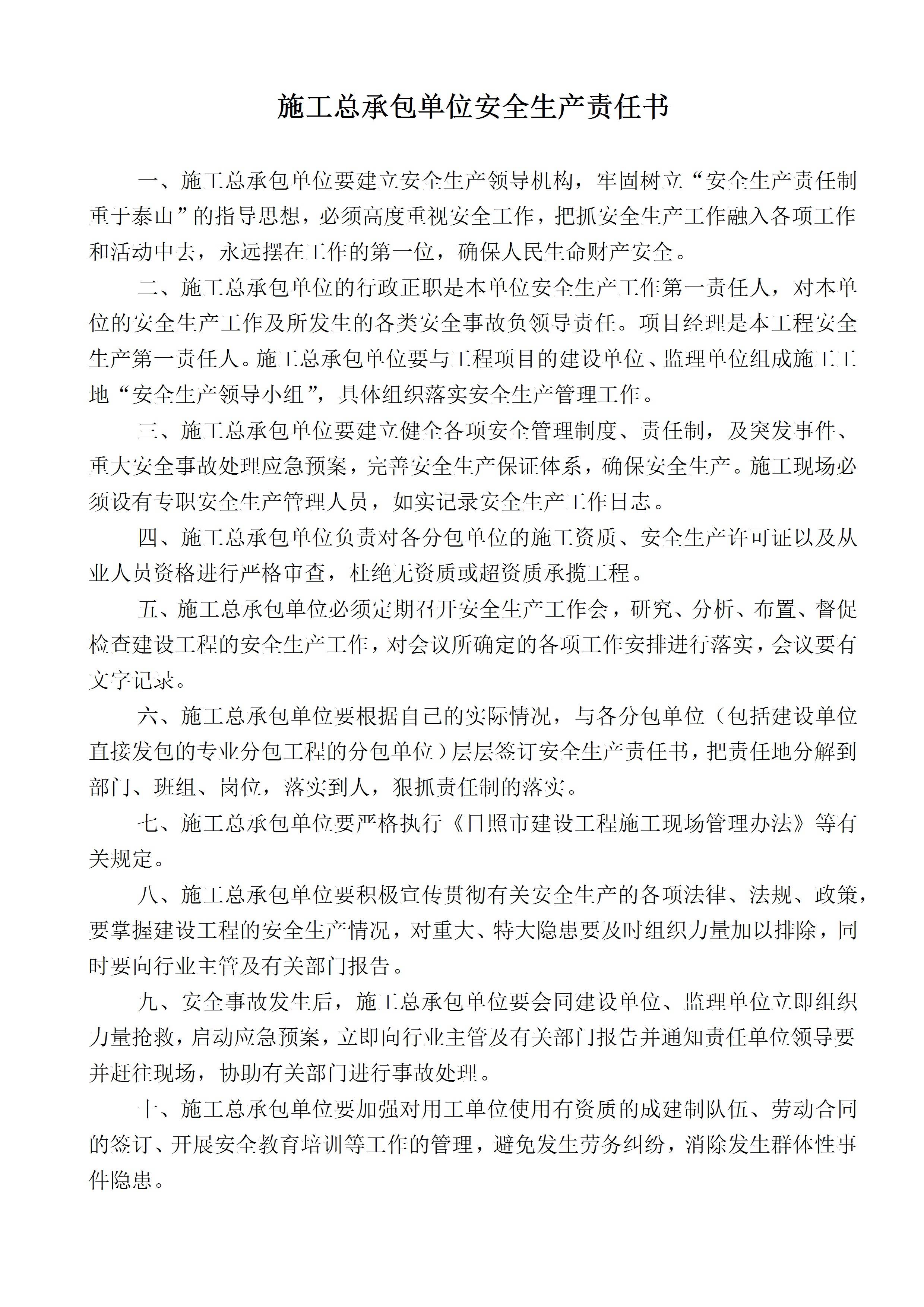 施工总承包单位安全生产责任书