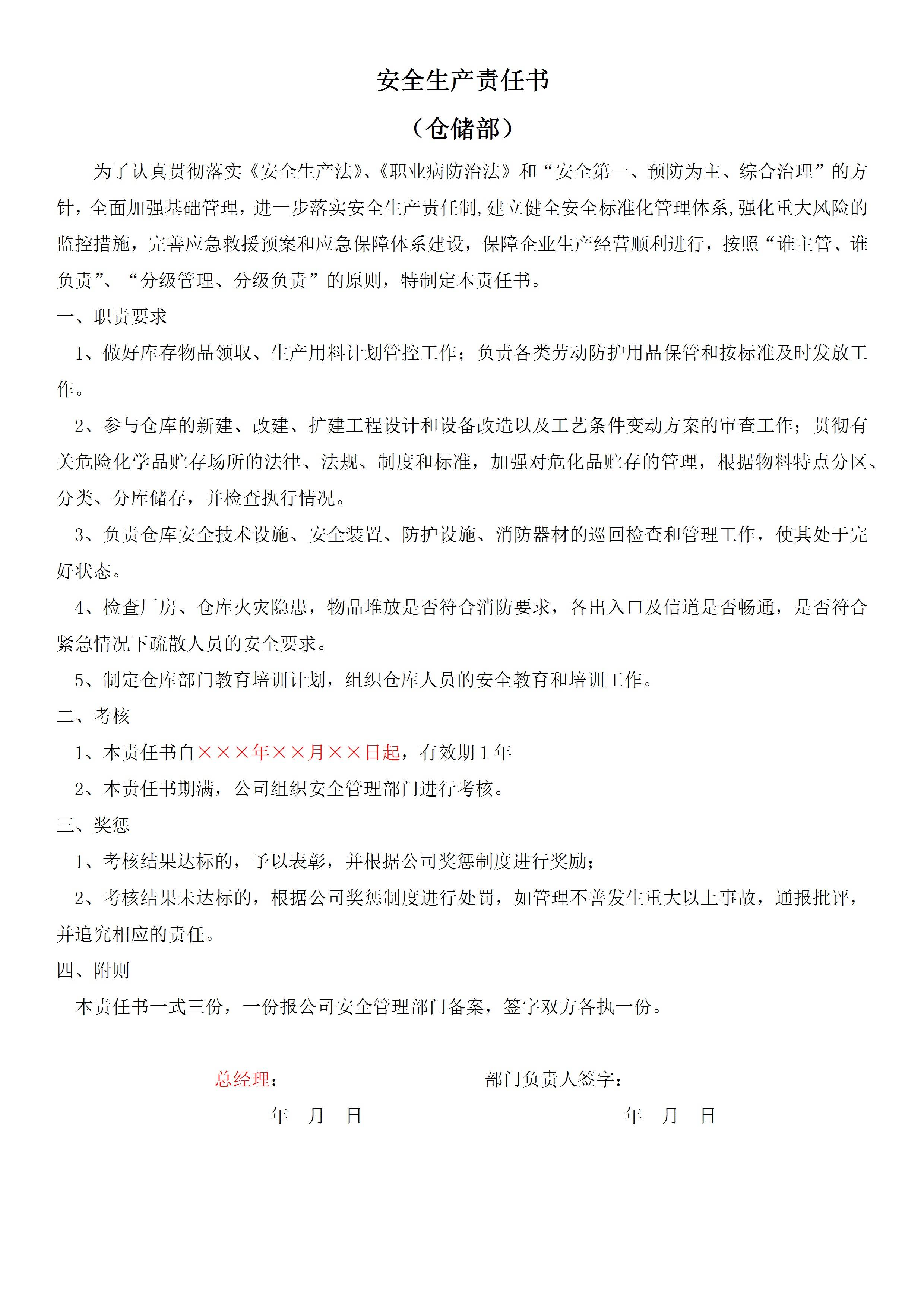 / 安全生产责任书-仓储部
