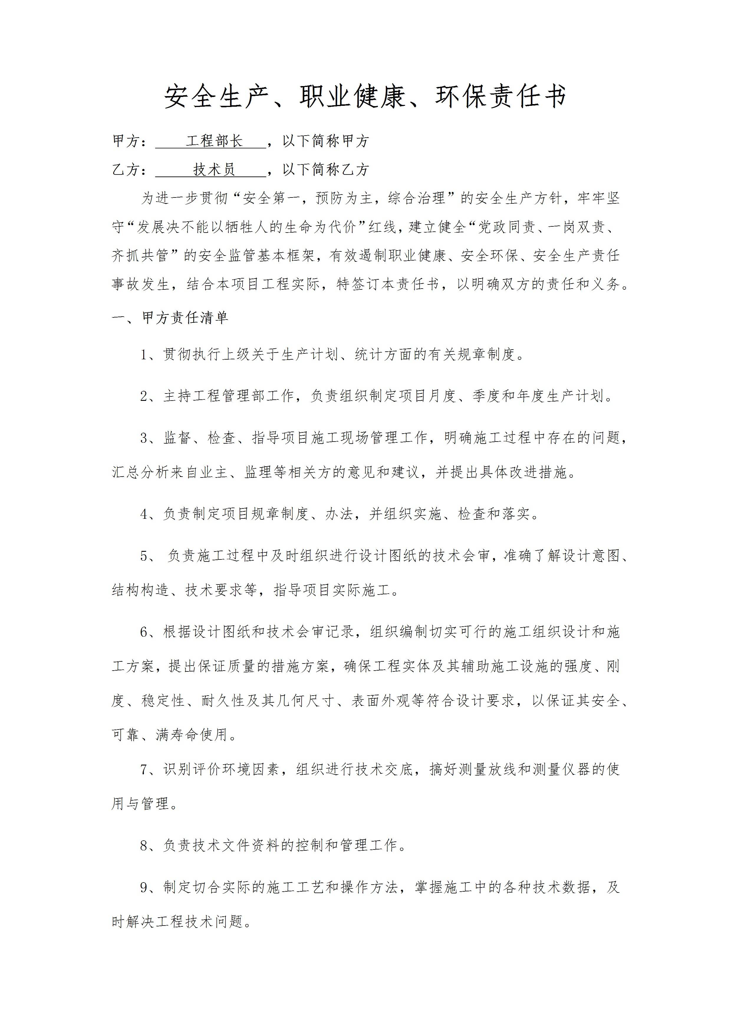 / 工程部与技术员责任书
