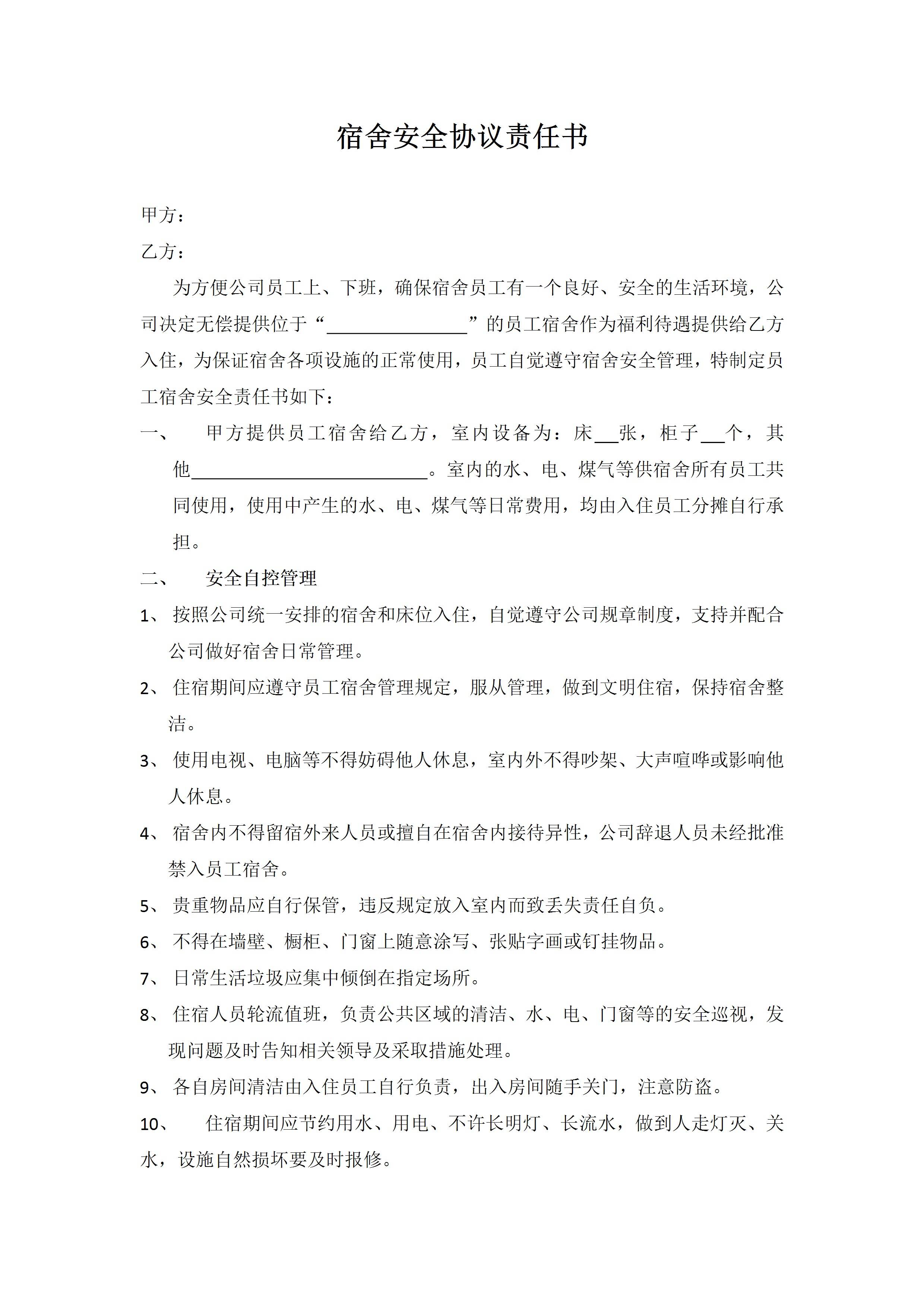 / 宿舍安全协议责任书
