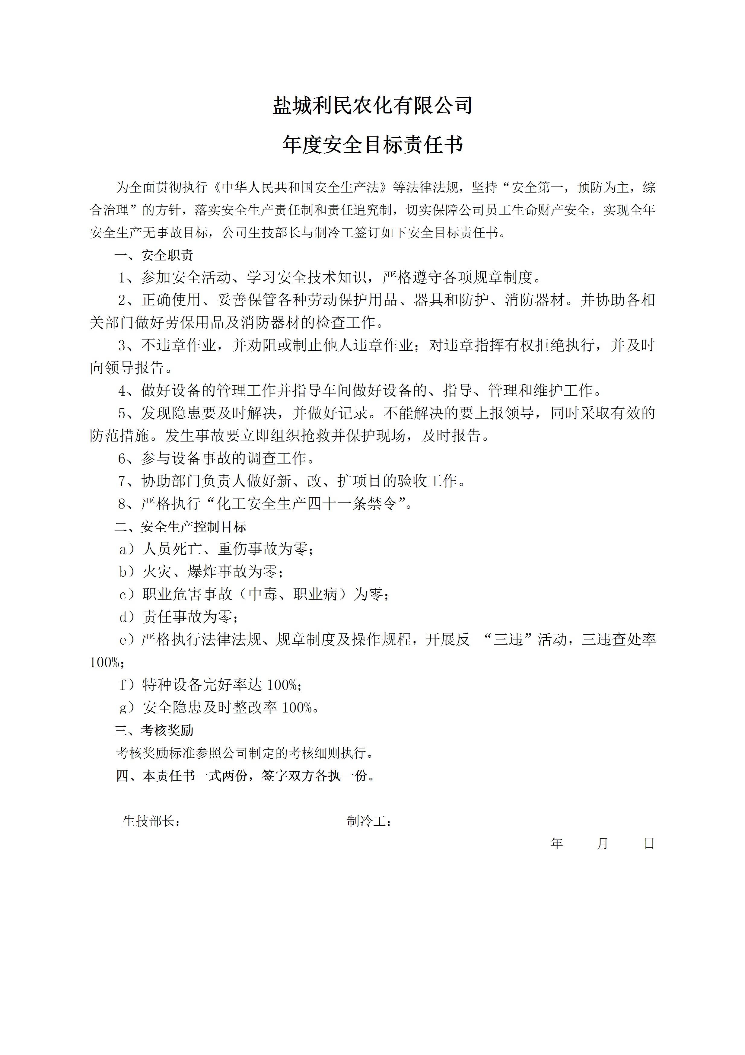 / 安全目标责任书(制冷工)