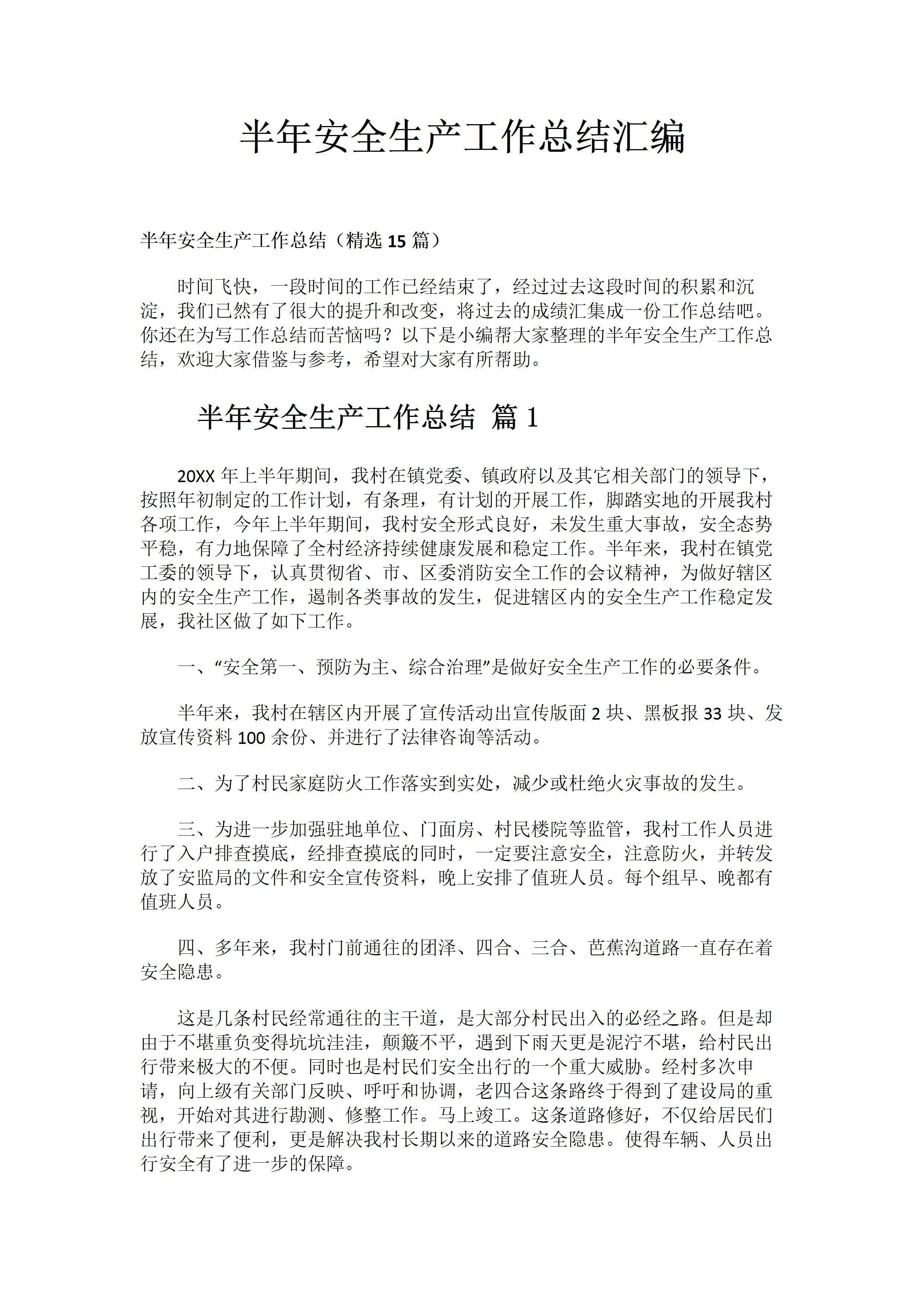 / 【模板】各类半年安全生产工作总结汇编31页