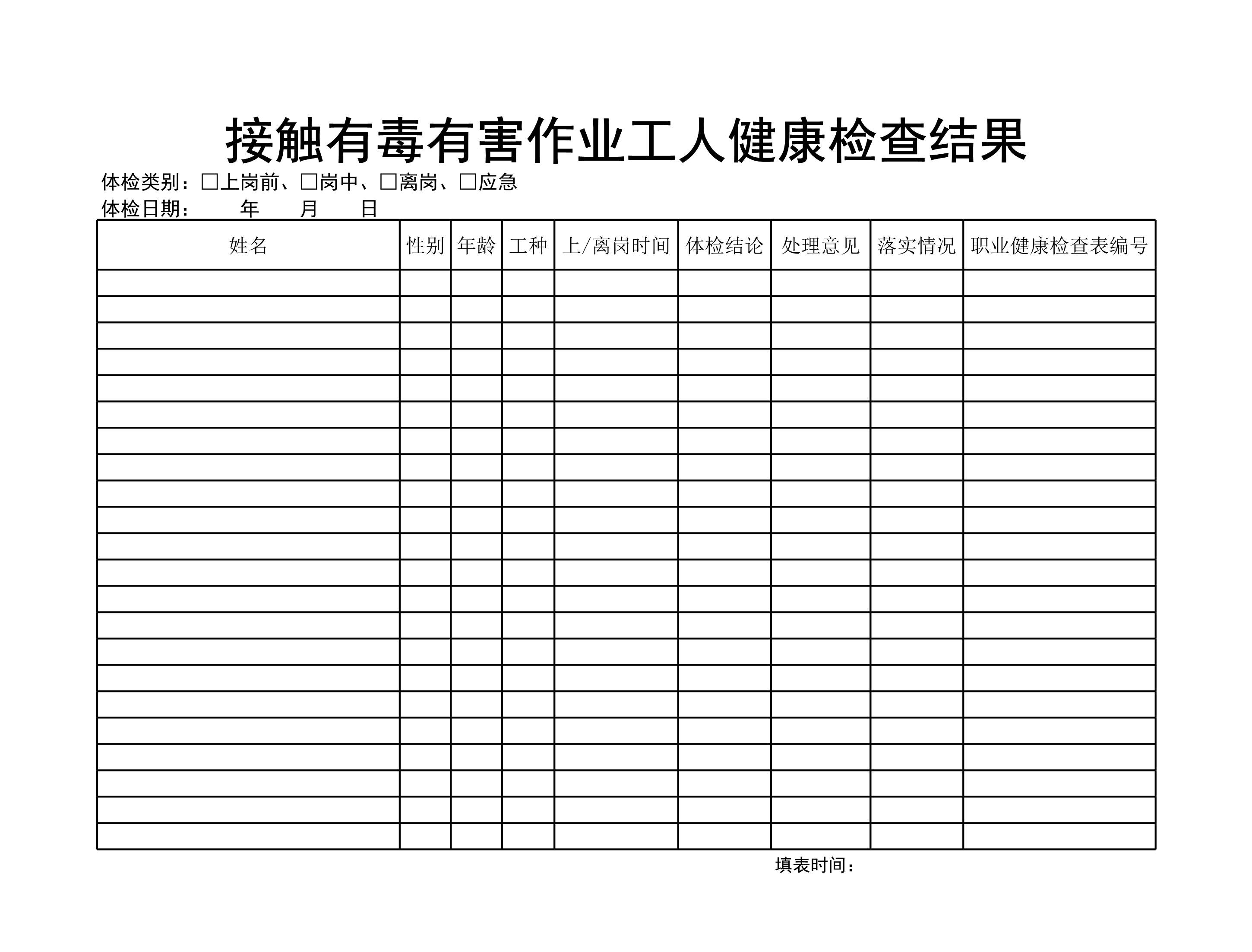 职业健康监护台帐(健康检查结果)