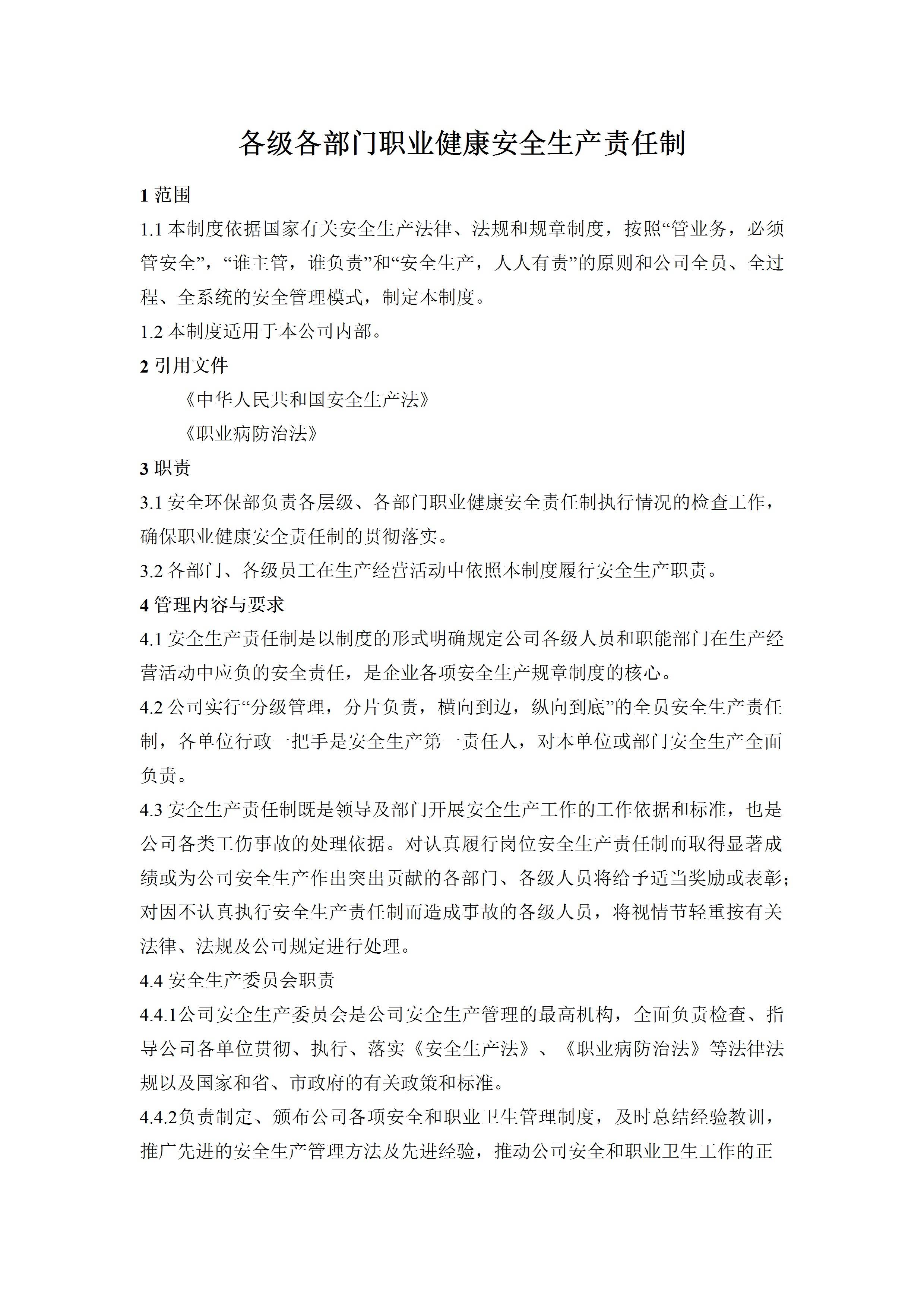 / 各级各部门职业健康安全生产责任制