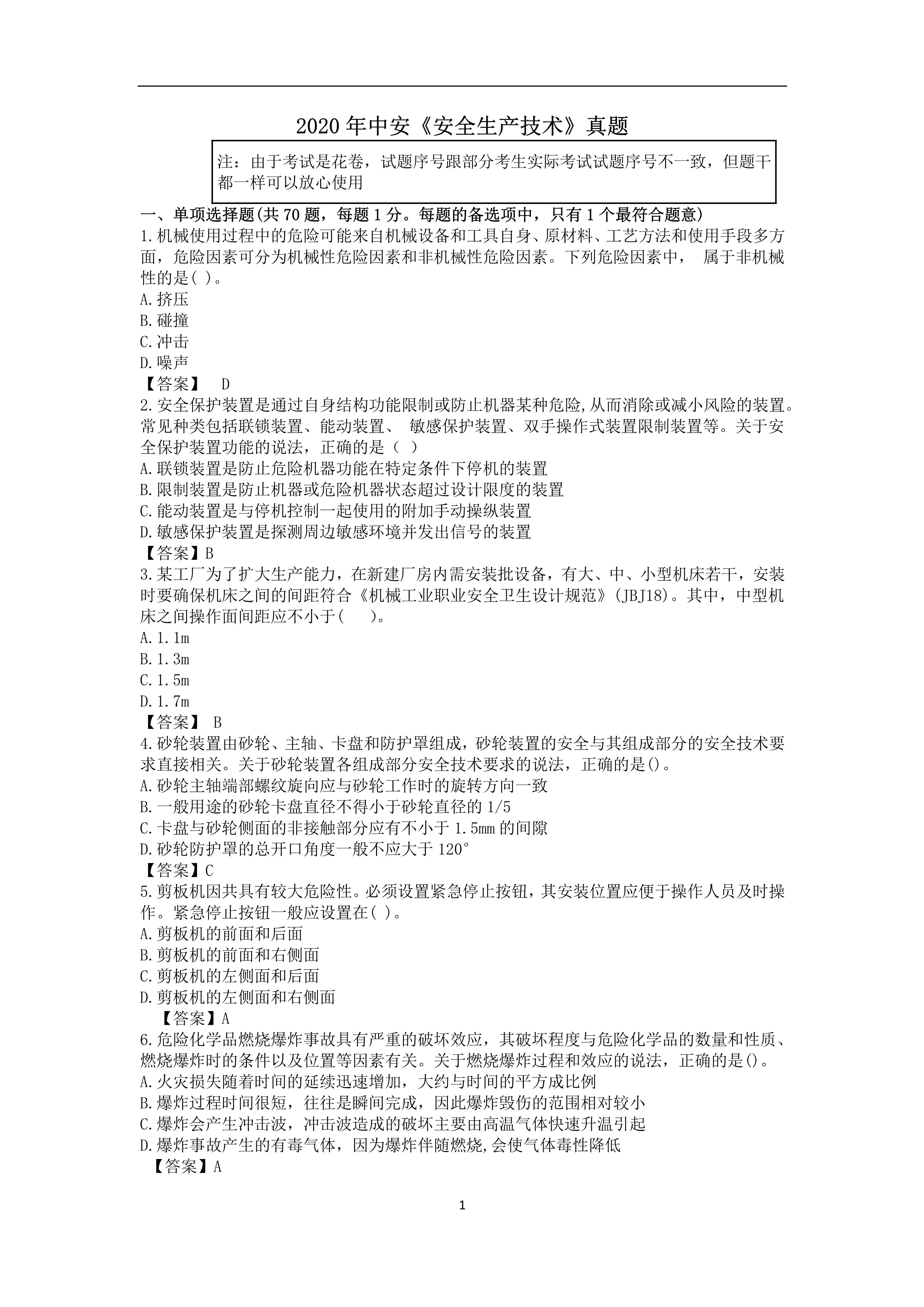 / 完整版:2020注安《安全生产技术》真题