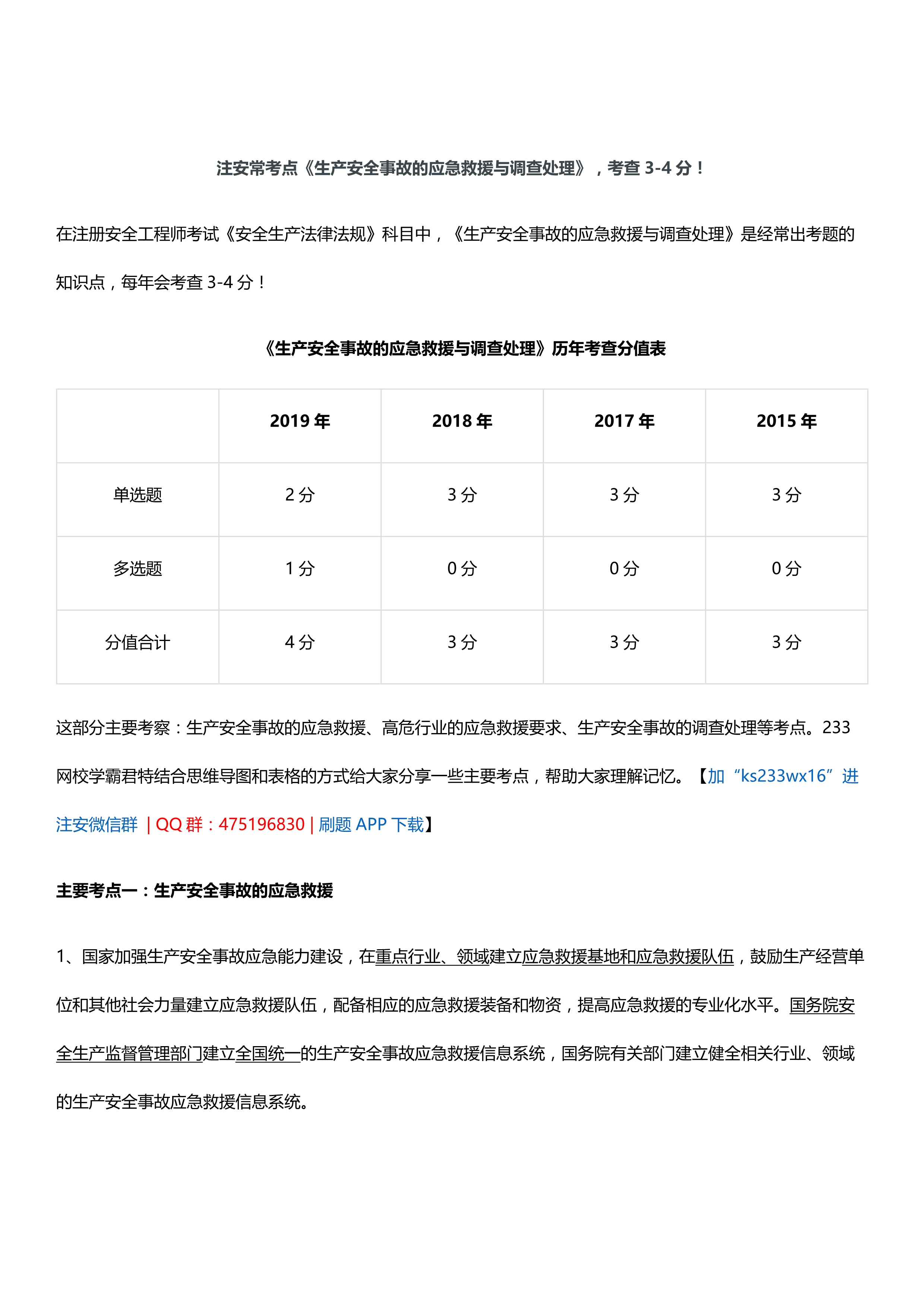 【常考点】注安常考点《生产安全事故的应急救援与调查处理》,考查3-4分!